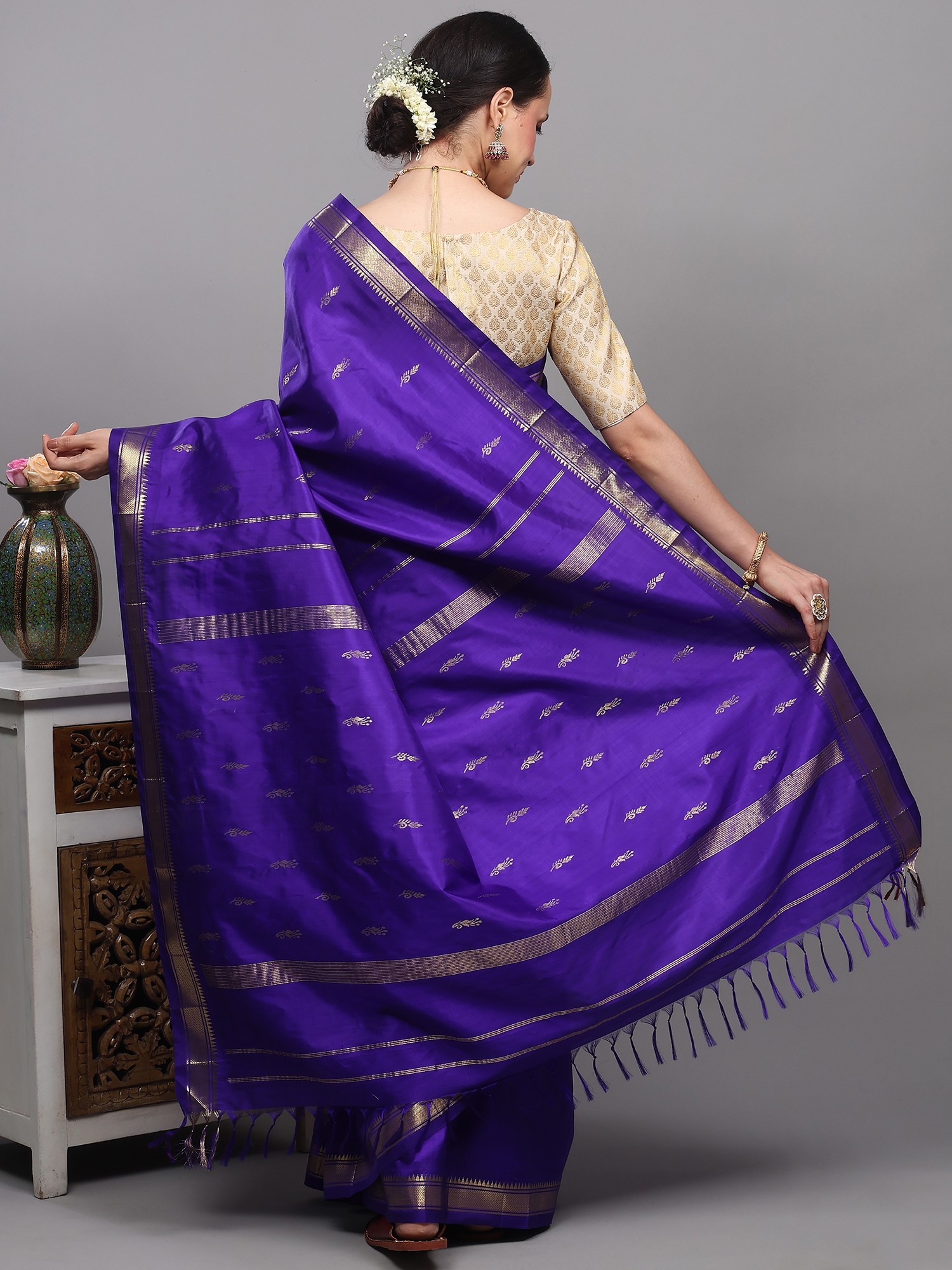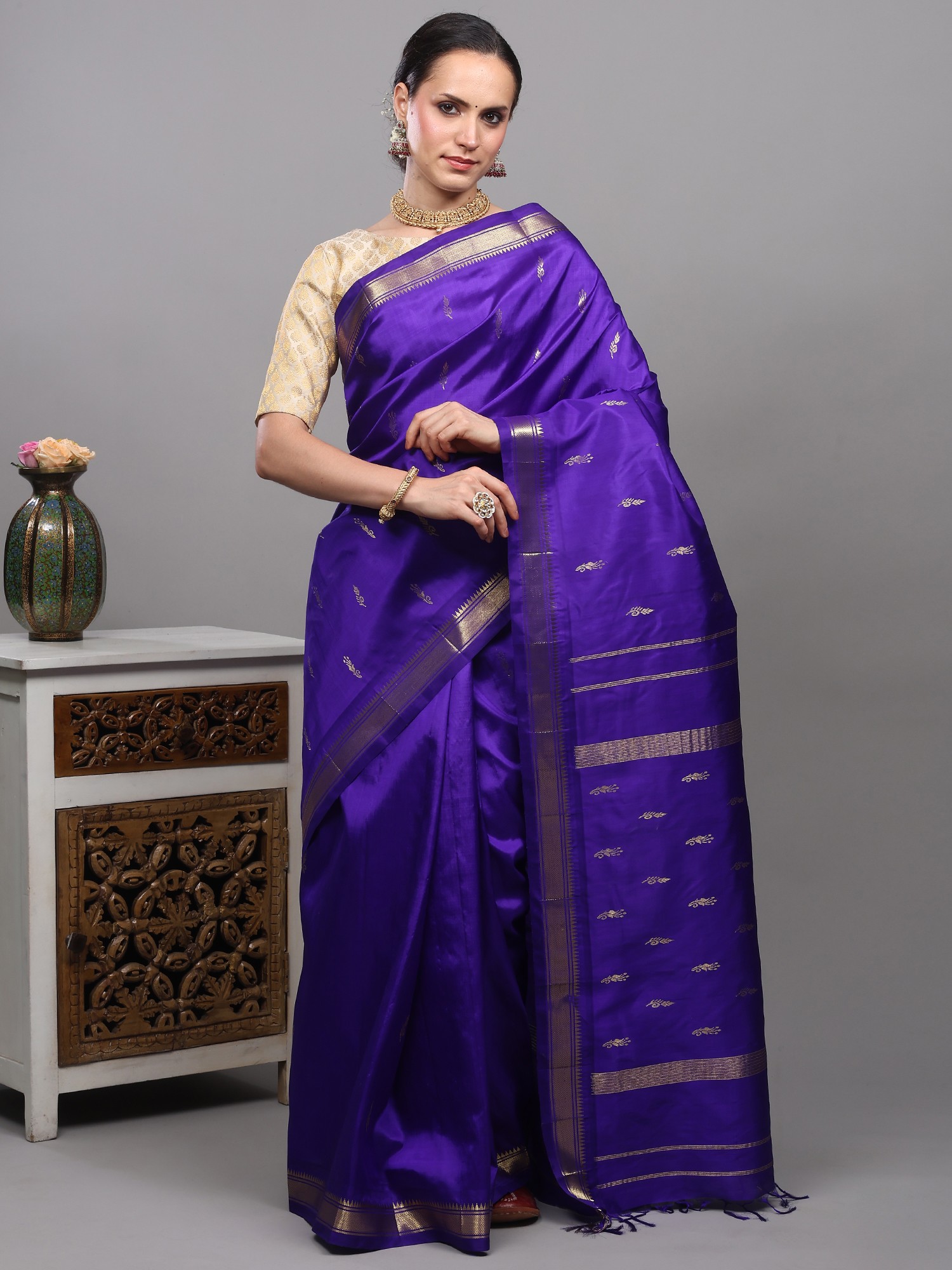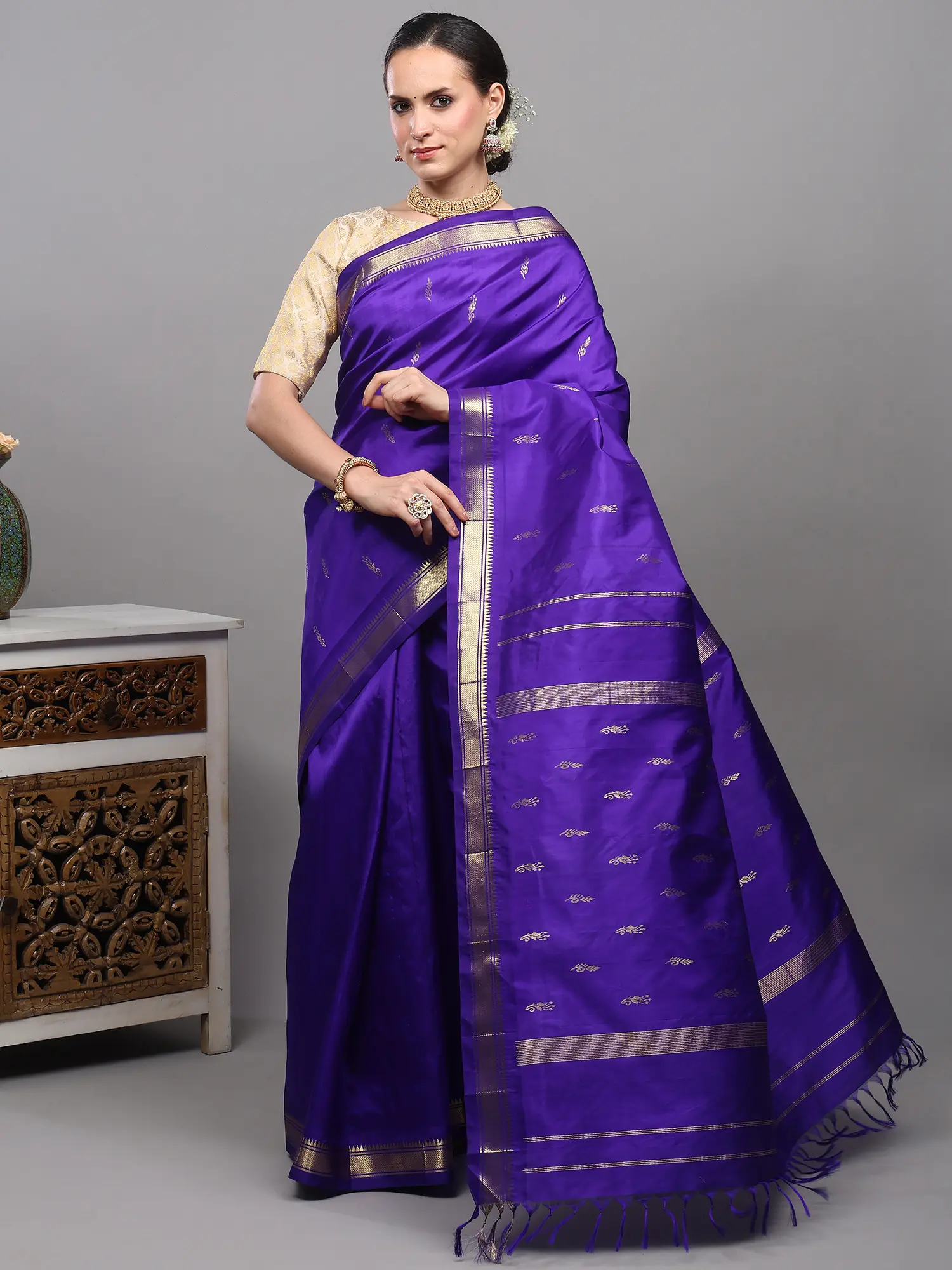 Bluefin Pure Silk Saree Temple Border Saree with Embroidered Dancing Girl and Woven Motifs from Chhattisgarh