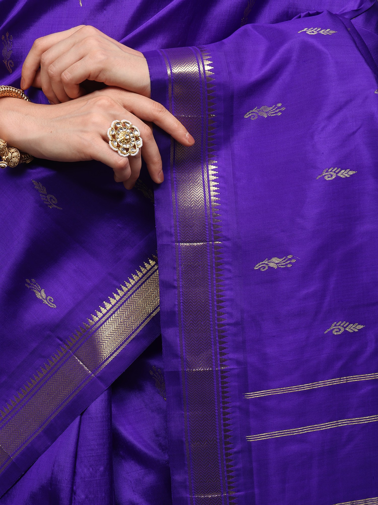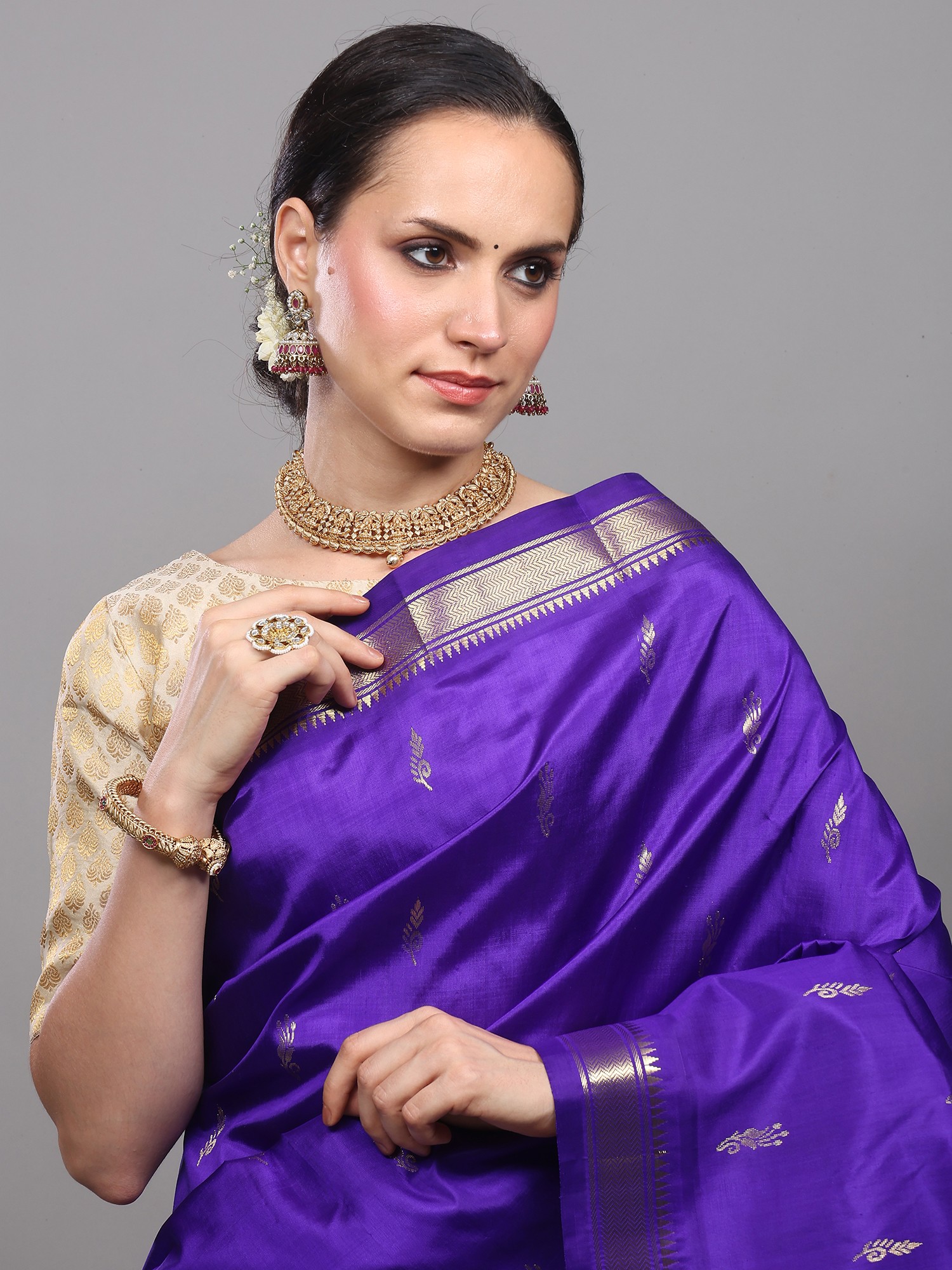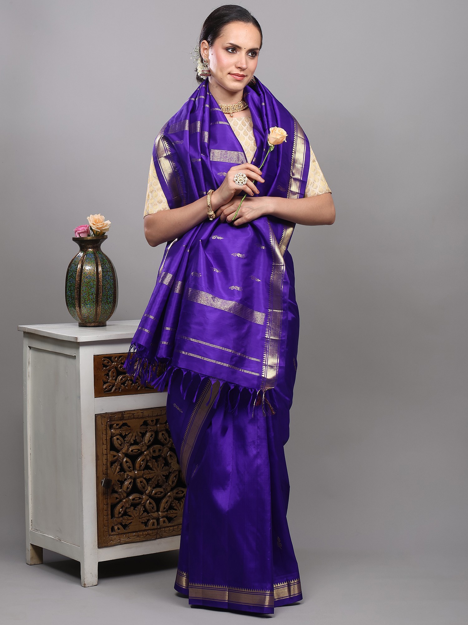 Bluefin Pure Silk Saree Temple Border Saree with Embroidered Dancing Girl and Woven Motifs from Chhattisgarh