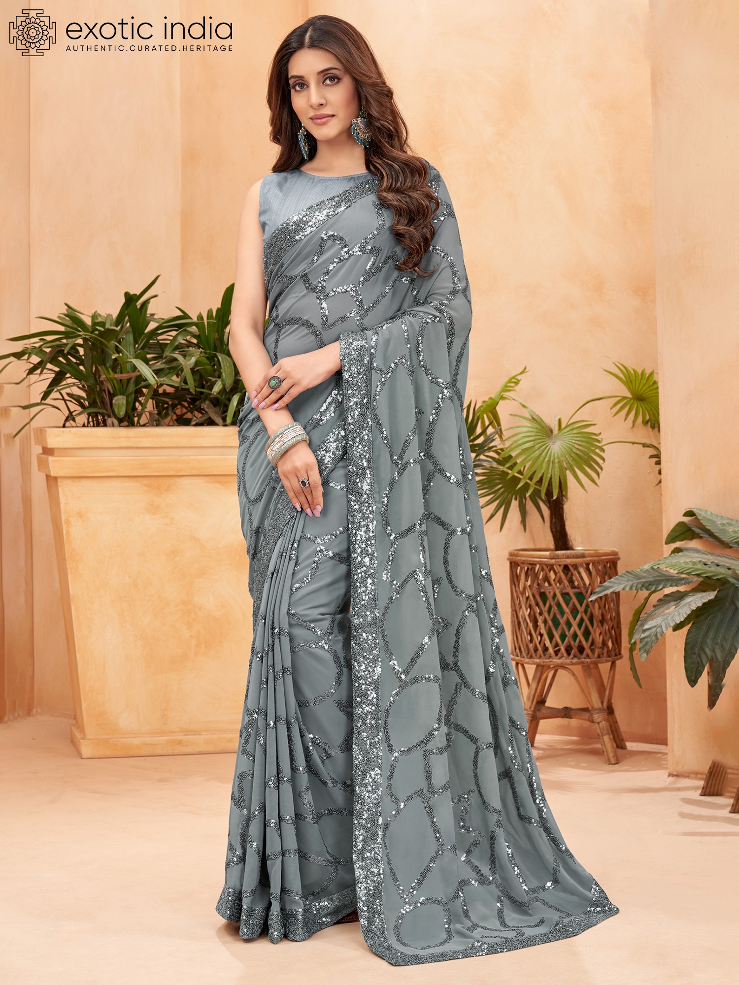 Grey Handloom Pure Chiffon Banarasi Sari with Brocade Weave