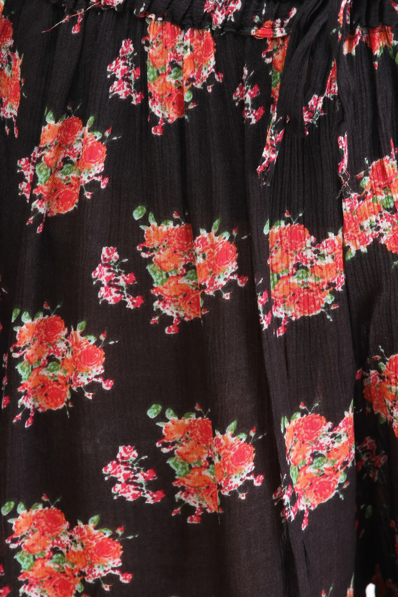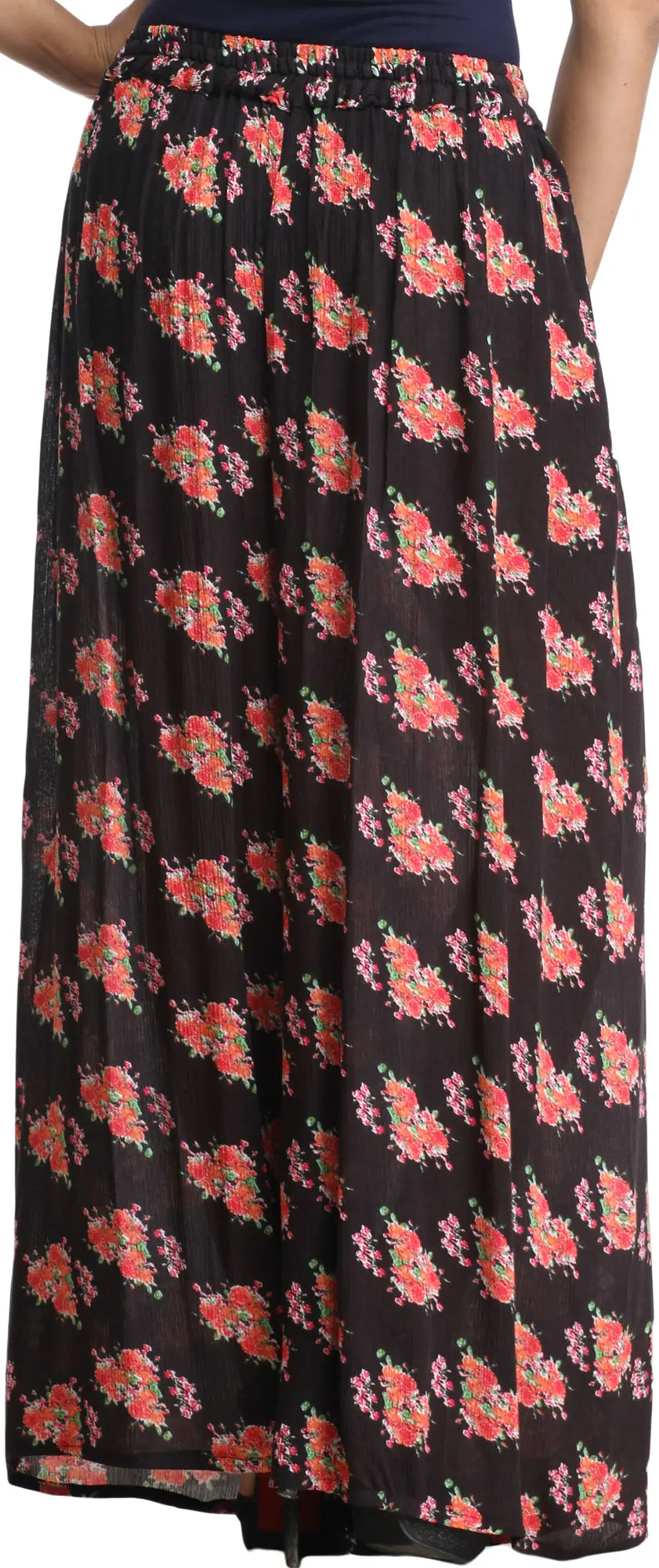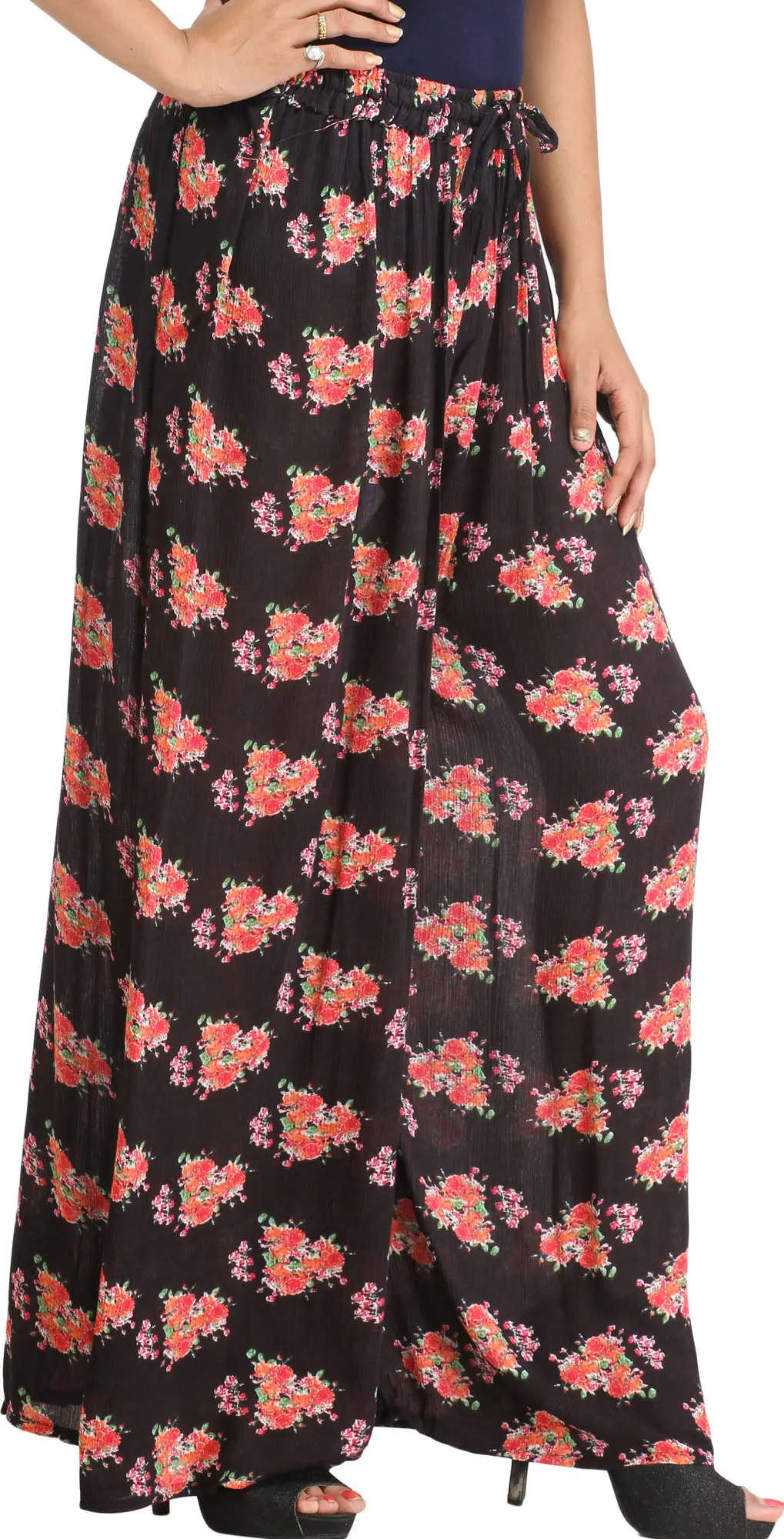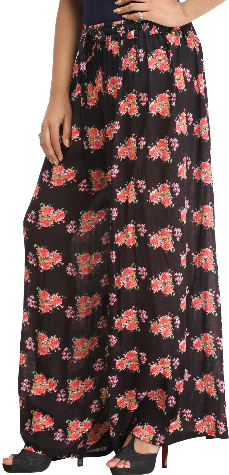 Entertain yourself with the fascinating printed roses adorning this Phantom-Black Casual Palazzo Pant. Made of premium rayon, it seamlessly combines comfort and class. This palazzo pant is a statement of uniqueness and boldness. The phantom black shade conveys mystery and confidence, while the rose motifs provide a touch of femininity.