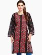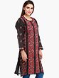 Caviar-Black Bamboo Leaf Digital Print Cotton Kurti with Quarter Sleeve