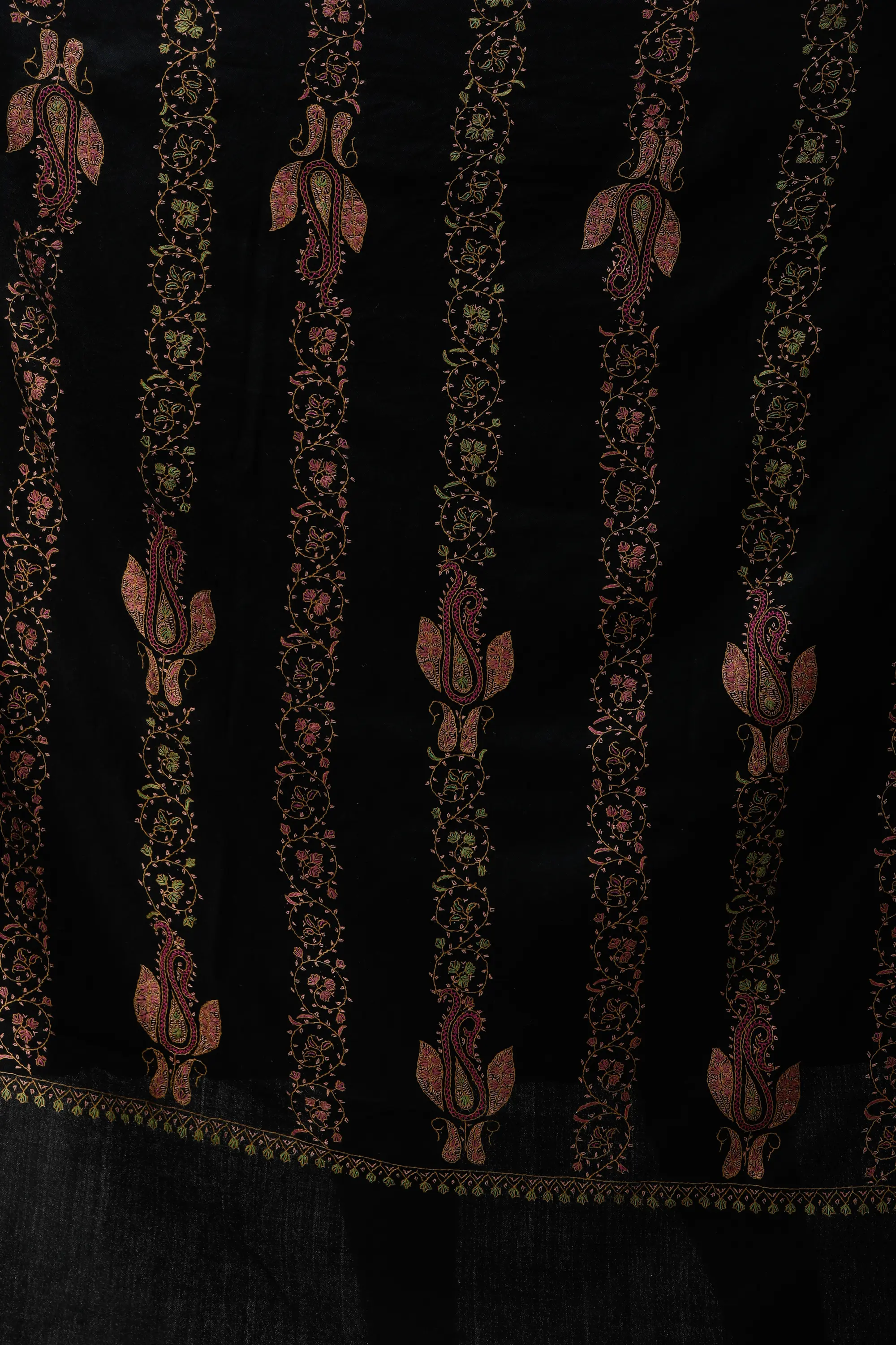 Tusha Shawl from Kashmir with Sozni Embroidered Multicolor Floral vines All Over