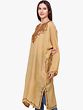 Wrapped in the warmth of heritage, the Kashmiri Phiran tells a narrative of enchanting beauty weaved into every thread. As winter’s frigid breath rushes over the valley, this pure wool phiran surrounds the user, providing a barrier against the biting cold. However, it is more than simply a garment; rather, it is a canvas of cultural legacy, embellished with floral hand-embroidery around the neck.