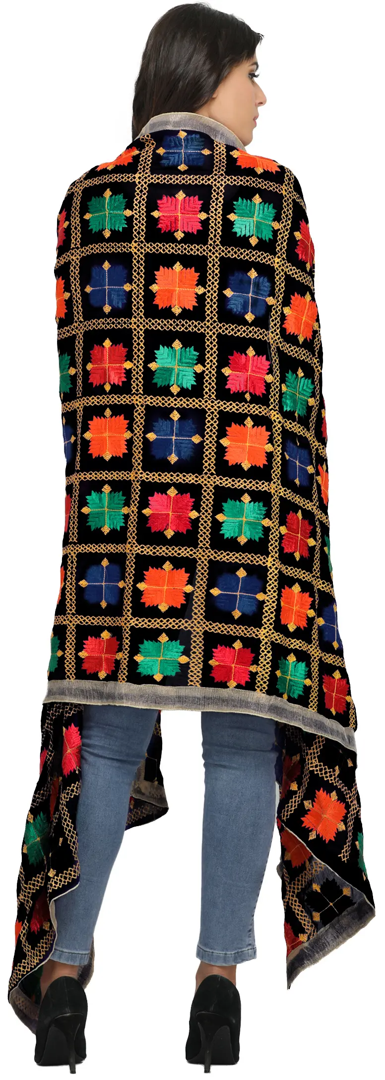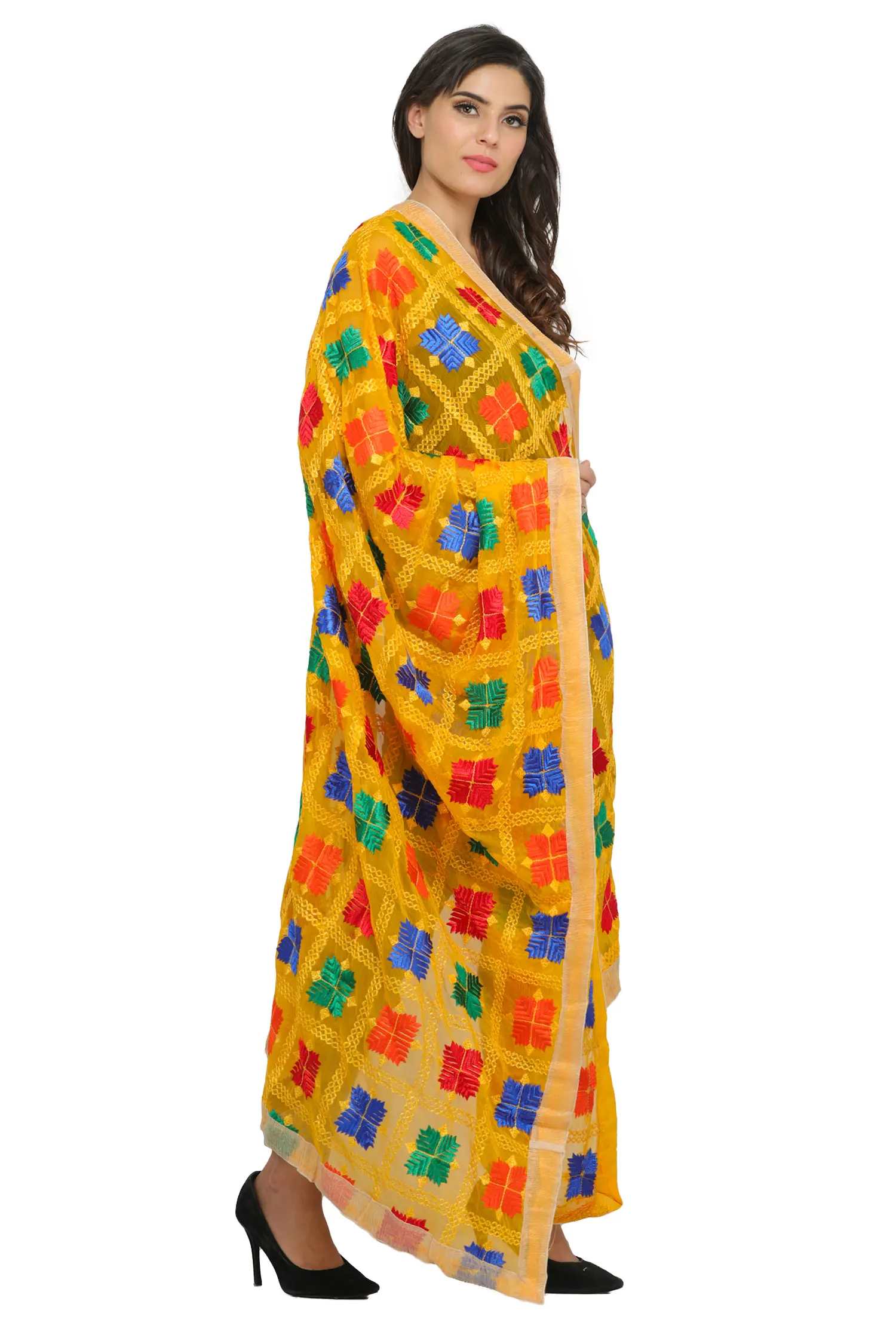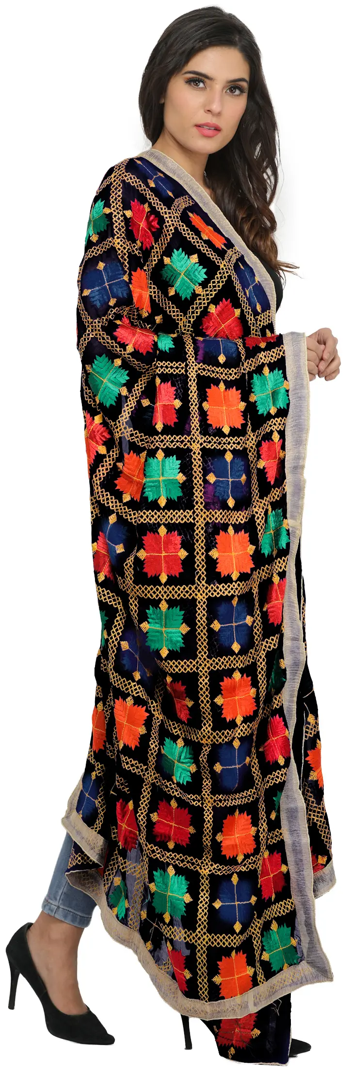 Phulkari Dupatta from Punjab with Multicolor Thread Embroidery All-Over