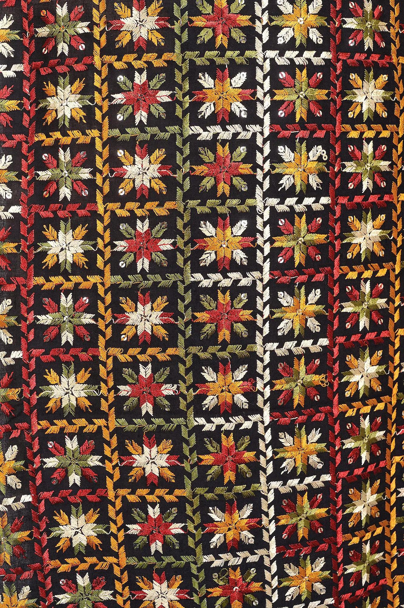 Phulkari Dupatta from Punjab with Multicolor Thread Embroidery and Bead-Mirror Work