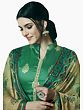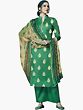 A royal deep green is made even more luxurious as it spreads on the soft art silk, in this pine-green salwar kameez, which is a beautiful and comfortable festive wear. The kurta is covered in ethnic motifs or Butas, inspired by the golden embellishment of Banarasi fabrics, and the salwar is a broad palazzo, to give you comfort as you move. The dupatta is beautifully patterned with exquisite motifs inspired by the Mughal floral patterns, giving you an effortlessly queenly look.