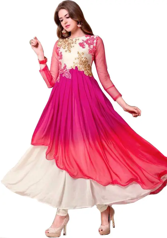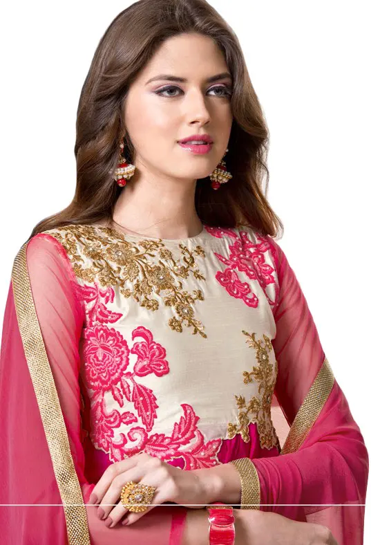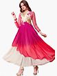 Pink and Ivory Designer Double-Layered Anarkali Suit with Floral-Embroidery and Crystals
