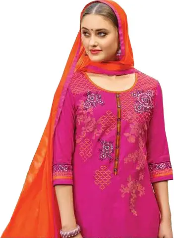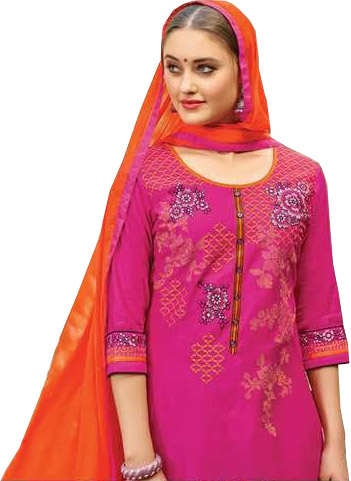 Step out in a burst of captivating color and intricate detail with this stunning Patiala salwar kameez suit. Designed for the modern woman who appreciates traditional artistry, this ensemble is a perfect fusion of comfort and style, making it an ideal choice for a variety of occasions, from festive celebrations to casual gatherings. The vibrant pink of the kameez provides a rich and eye-catching base, creating a statement piece that is both sophisticated and playful.
