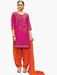 Pink and Orange Embroidered Patiala Salwar Kameez Suit with Chiffon Dupatta
