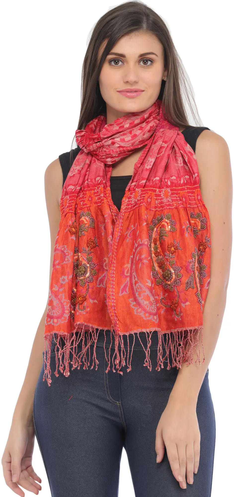 Scarf with Kinnauri Embroidered Border in Multicolor (Unisex) from Kullu