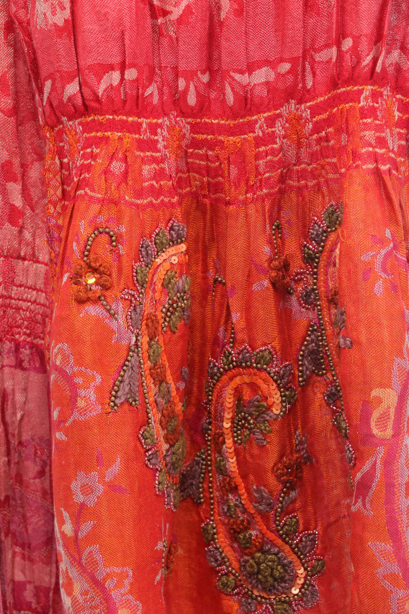 Cinnabar Chanderi Salwar Kameez Fabric with Block-Printed Flowers