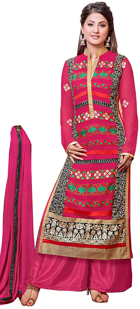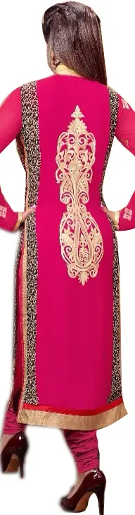 Jet-Black Long Chudidar Kameez Suit with Zari-Embroidered Patches and Self-Embroidery
