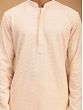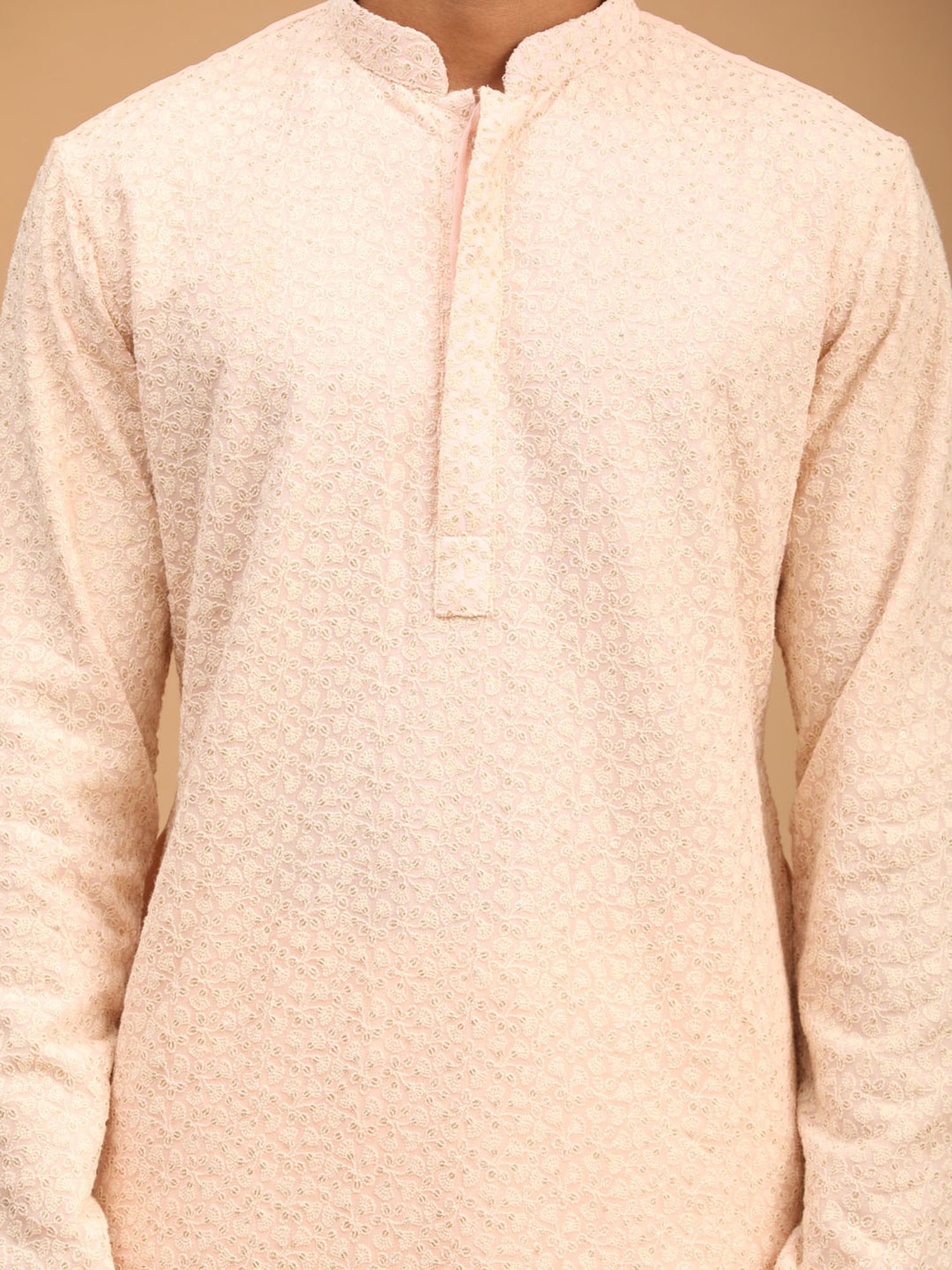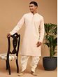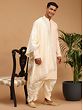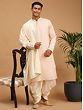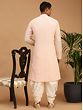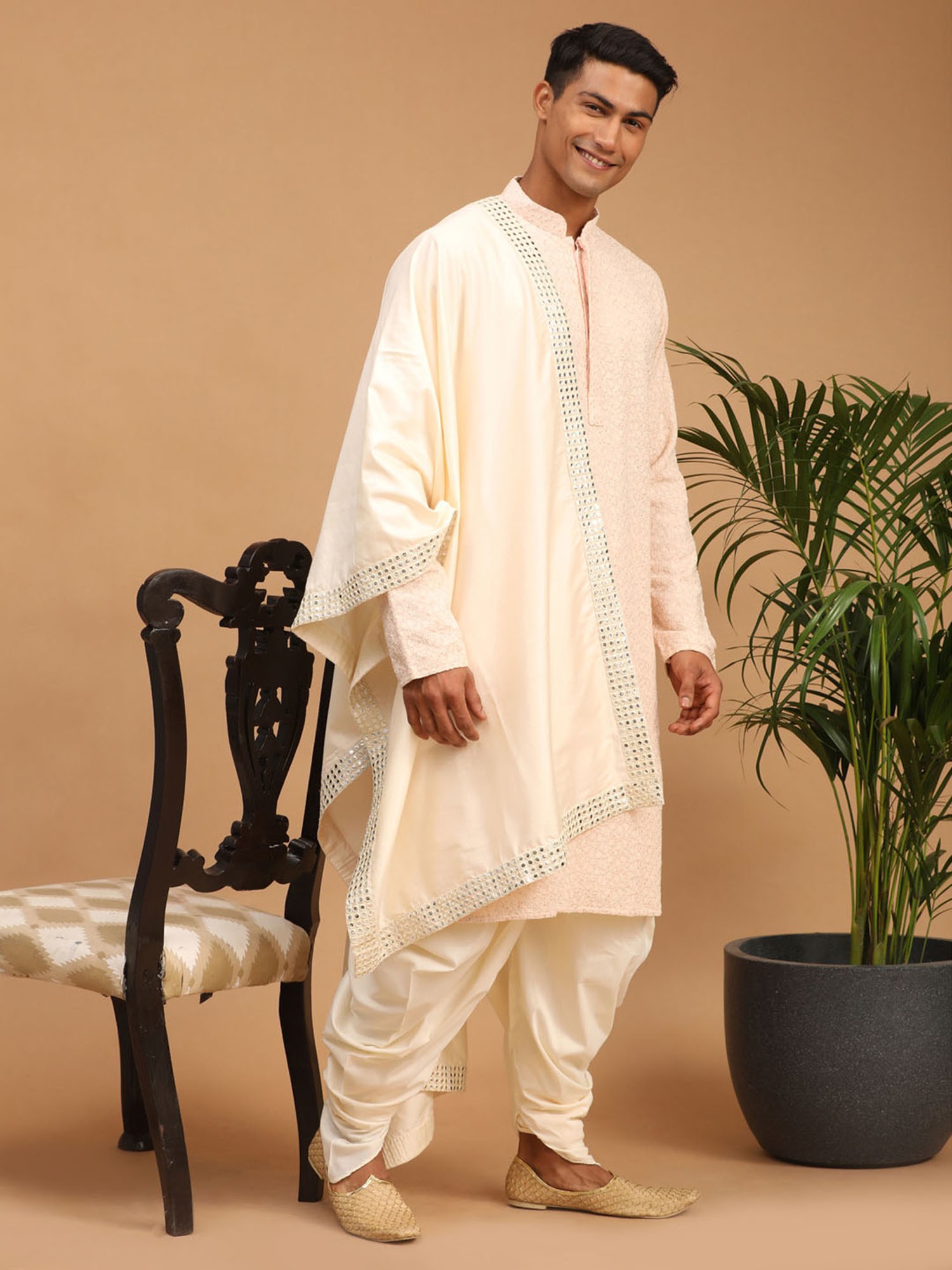 Indulge in elegance with this pink georgette kurta featuring a floral vine motif thread work, paired gracefully with a cream viscose blend cowl style dhoti and a mirror work viscose dupatta. The delicate floral thread work on the pink georgette adds a touch of refinement, while the cowl style dhoti in cream exudes sophistication. The ensemble is completed with a mirror work dupatta for a touch of sophistication. This flawless outfit is an outstanding creation of traditional craftsmanship, making it the distinguished choice for special occasions and celebrations. Embrace the charm of intricate details and a refined silhouette for a truly captivating look.