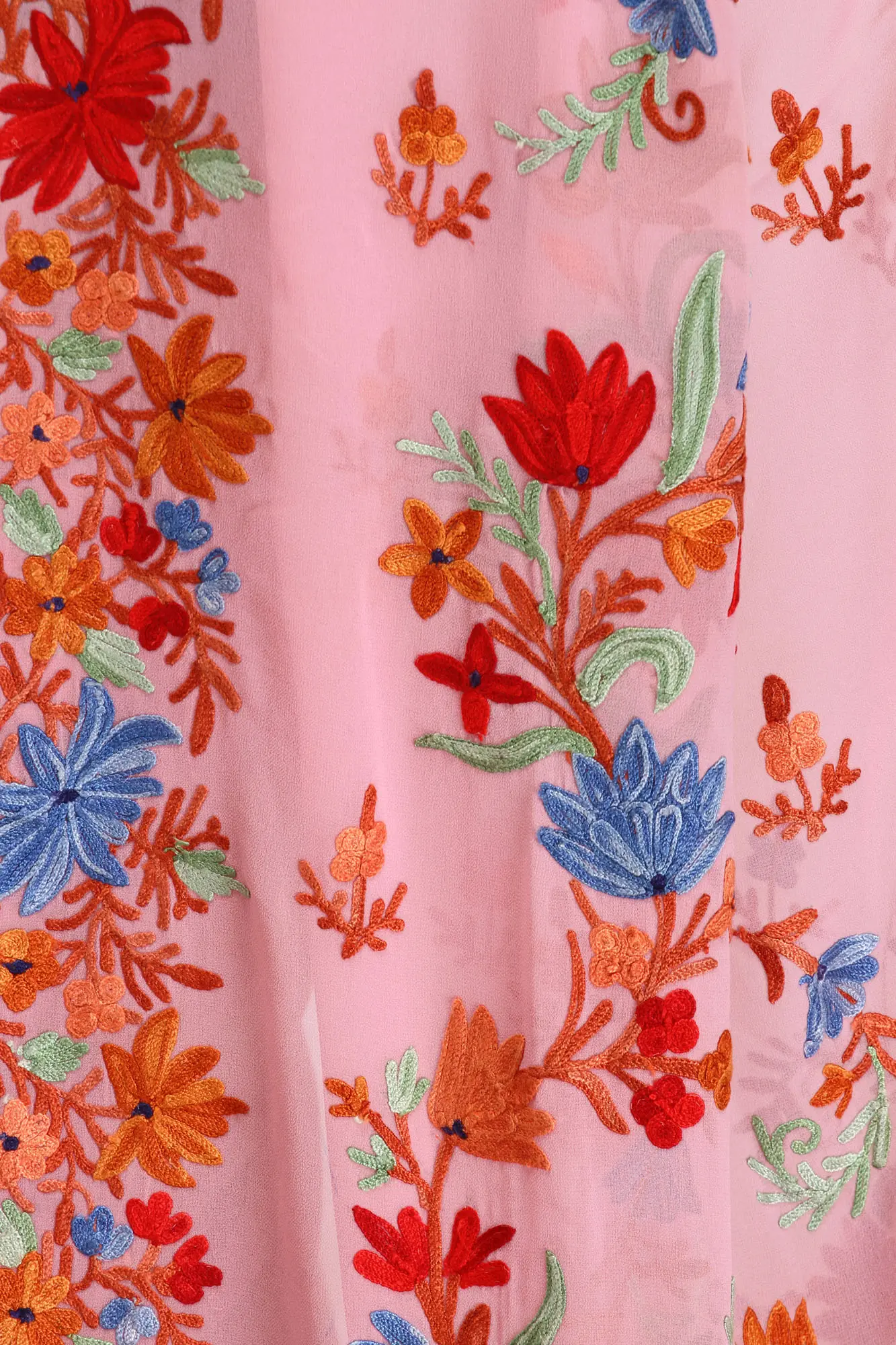 Georgette Kashmiri Saree with Aari Embroidered Multicolor Flowers