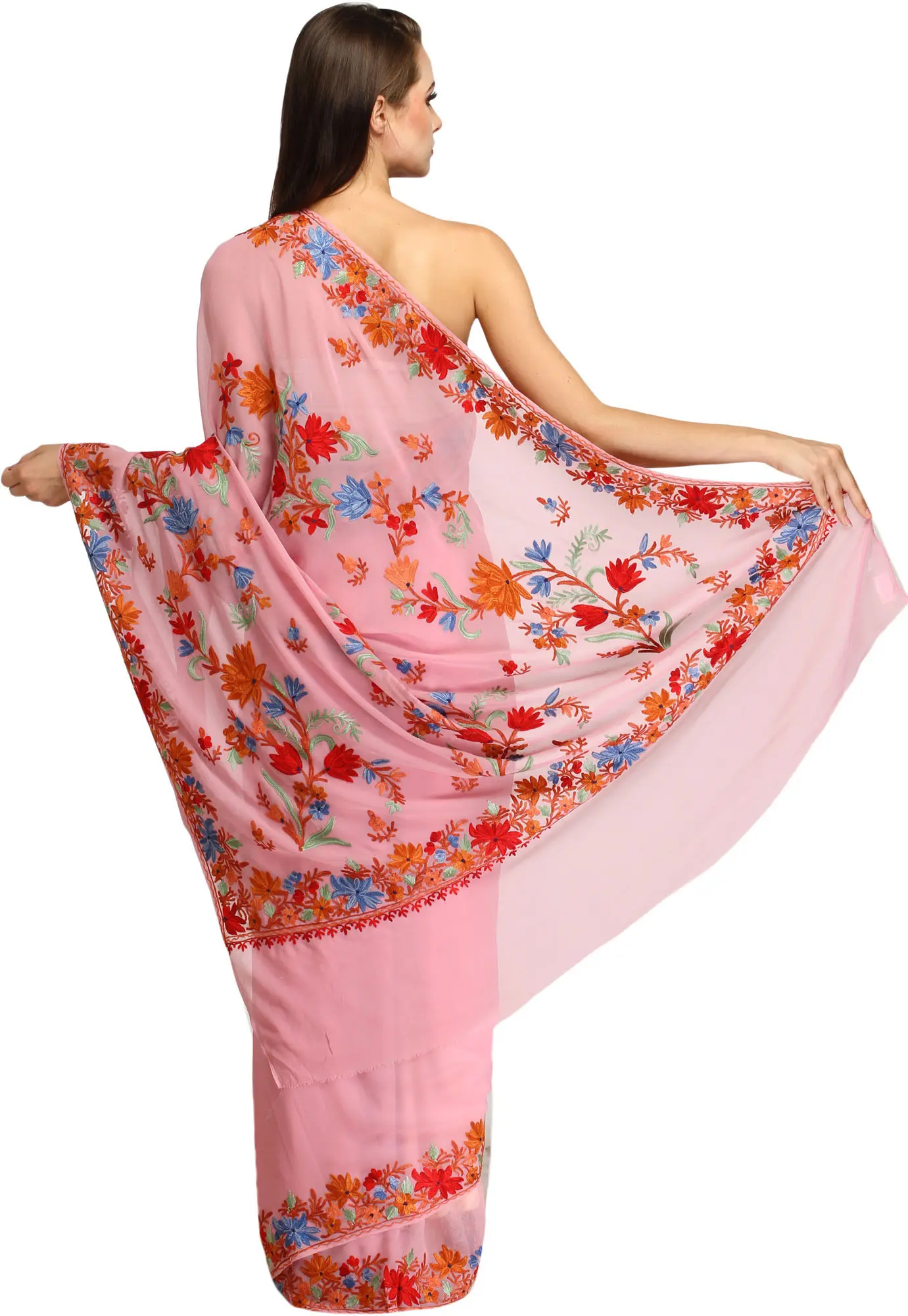 Georgette Kashmiri Sari with Beautiful All-Over Kashida Embroidery