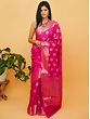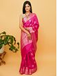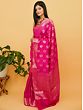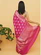 Pink-Peacock Pure Munga Silk Banarasi Saree with Floral Butta and Tribal Pattern Border