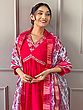 Ivory and Ruby Red Churidar Suit with All-Over Embroidery