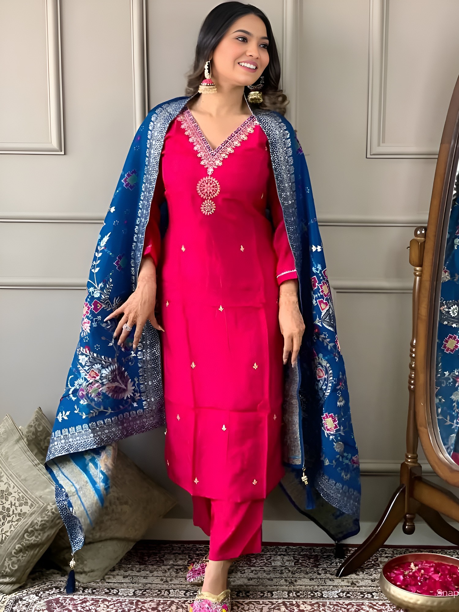 Straight Salwar Suit Set and Intricate Chain Stitch Embroidery from Kashmir