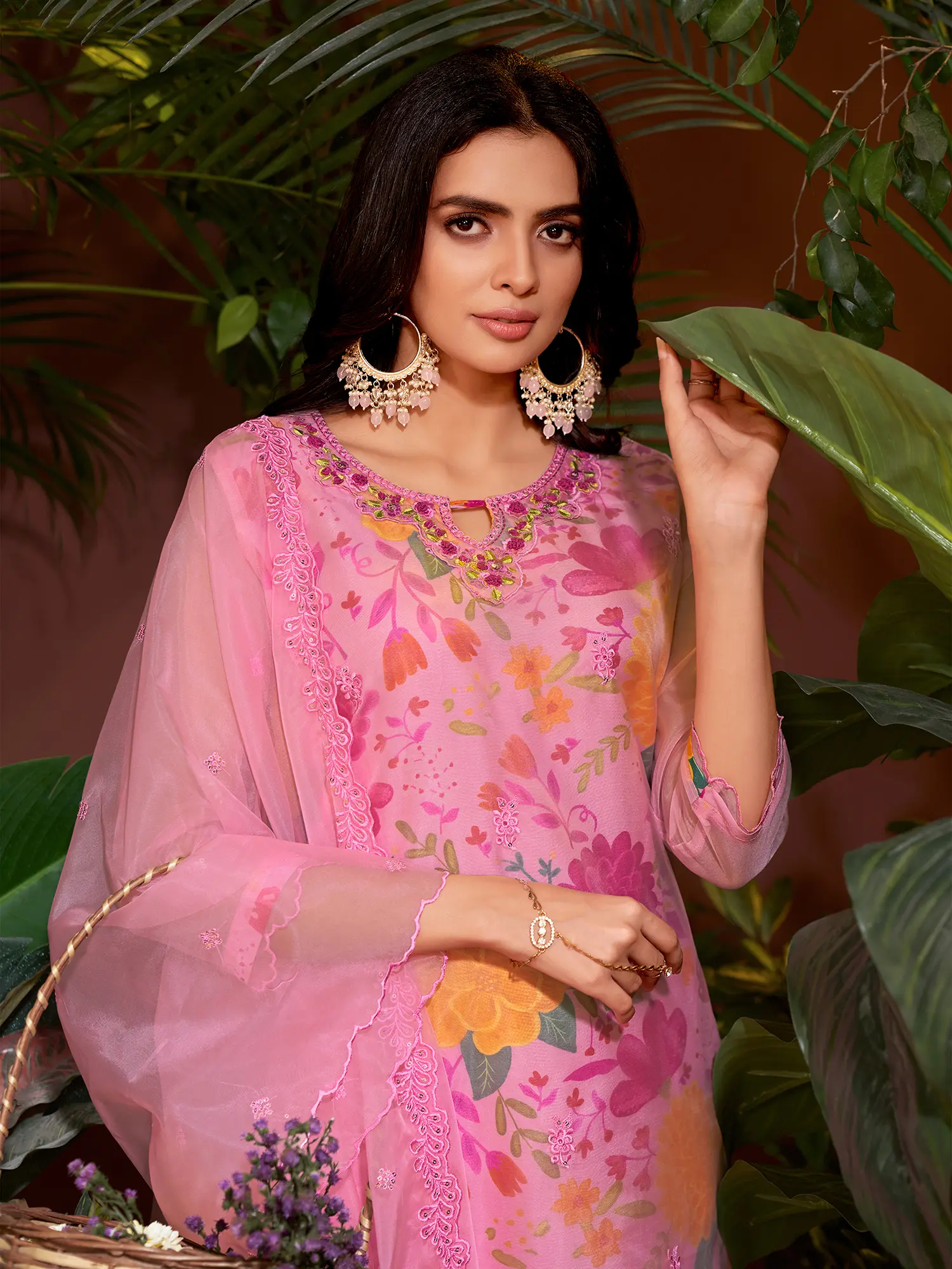 Peach-Orange Organza Lehenga Choli And Dupatta With Zari Thread Embroidered And Digital Print Work