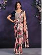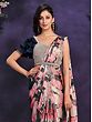 Pink Satin Silk Embroidered Ready To Wear Saree With Stitched Blouse
