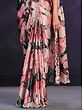 Pink-Peacock Georgette Saree from Bangalore with Zari Weave Chakra