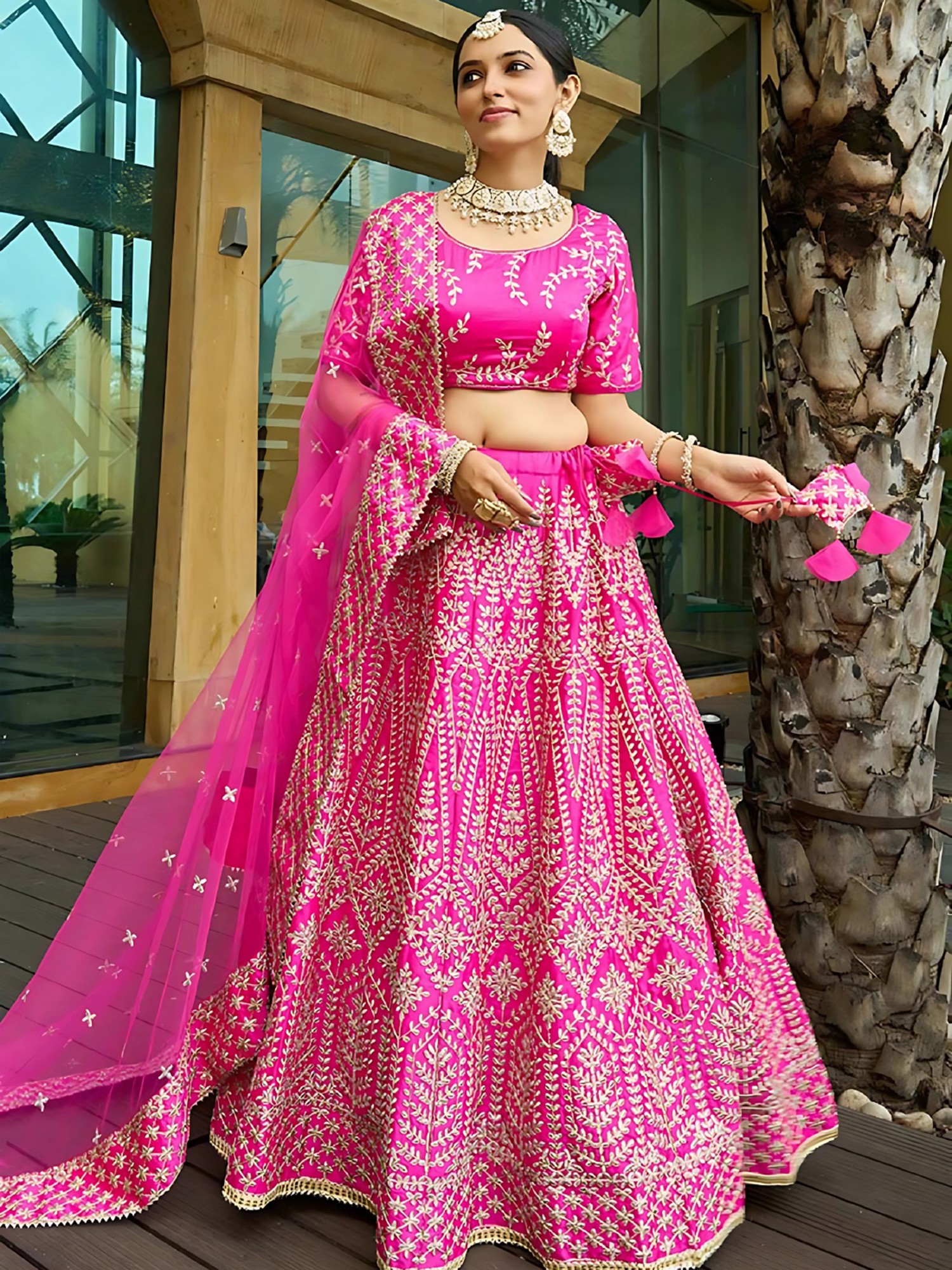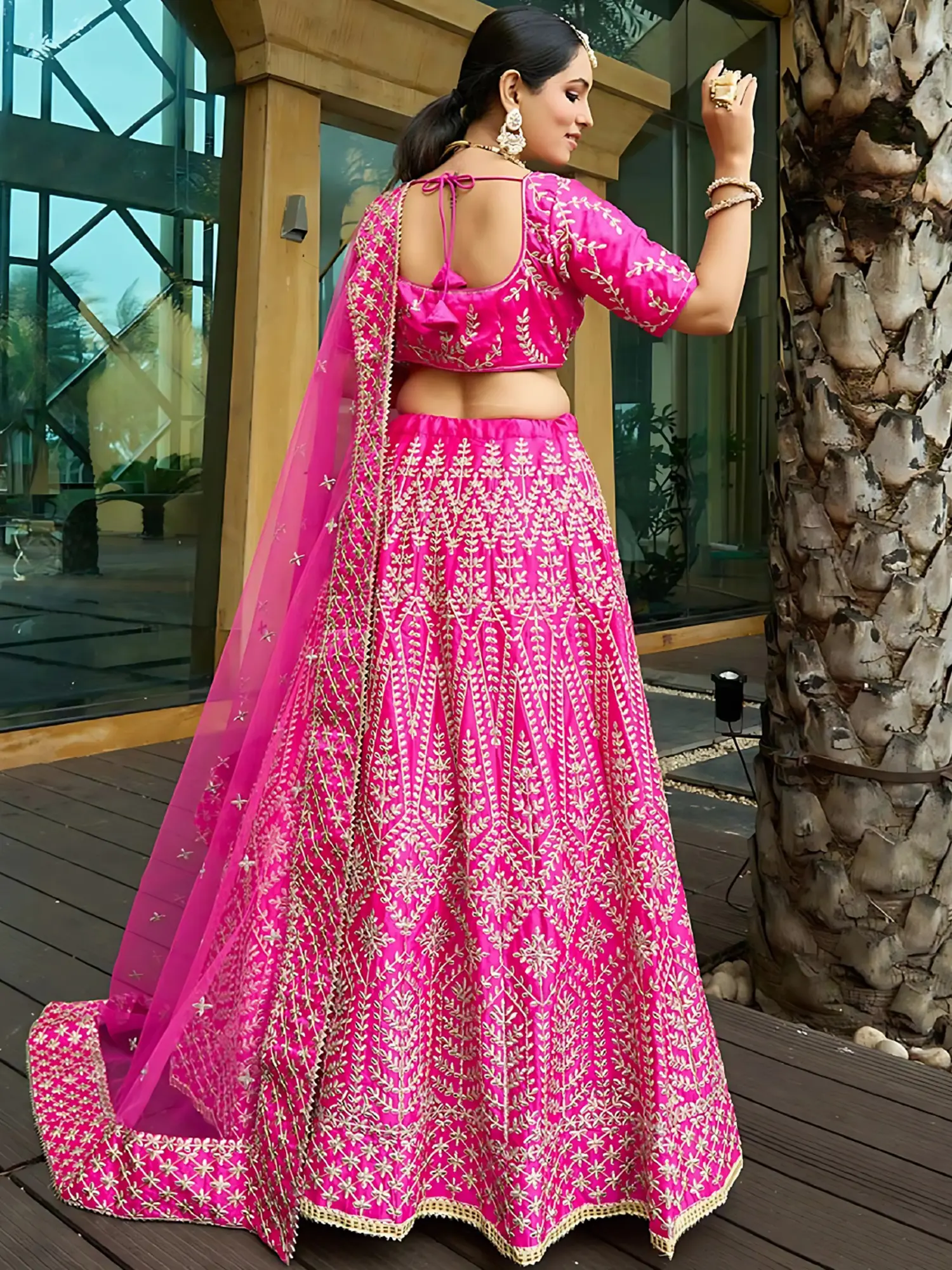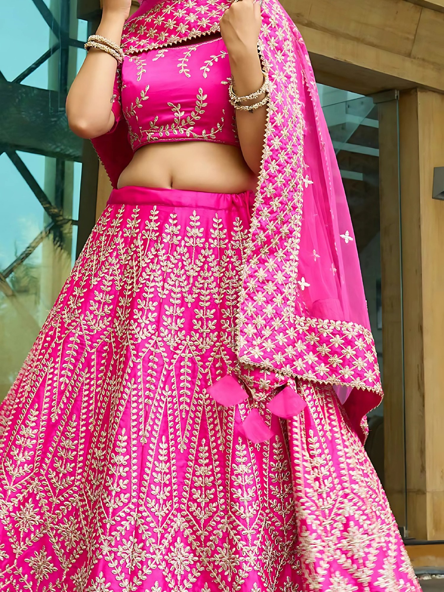 Embrace Elegance with the Radiant Pink Satin Silk Lehenga Choli