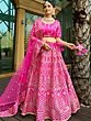 Paradise-Pink Soft Net All Over Thread Work Embroidered Lehenga Choli with Scalloped Dupatta