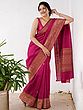 Vibrant-Pink Purbasthali Sari from Jharkhand with Woven Stripes