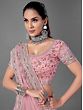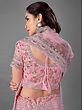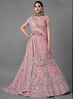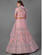 Enchant in the Pink Soft Net Lehenga Choli, a vision of subtle elegance. The soft hue of the fabric sets the stage for intricate ethnic patterns, woven with precision through Floral-Necklace Design Dori, Thread, Zari, and Zarkan Work. Shimmering Zari threads dance across the fabric, while Zarkan embellishments add a touch of ethereal glamour.