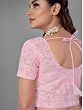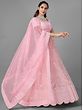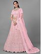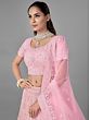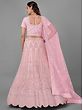 Embody the elegance and refinement of heritage Indian wear with this pink soft net lehenga choli set. A go-to attire for brides, bridesmaids, and women looking the steal the show on special occasions, a lehenga is a gem from the treasure of Indian queens and princesses, infused with feminine appeal and timeless stylishness. This pink lehenga is covered in ornate threadwork and Zarkan work that creates magical elements on the skirt and its hemline, making this festive wear a must-have this season.