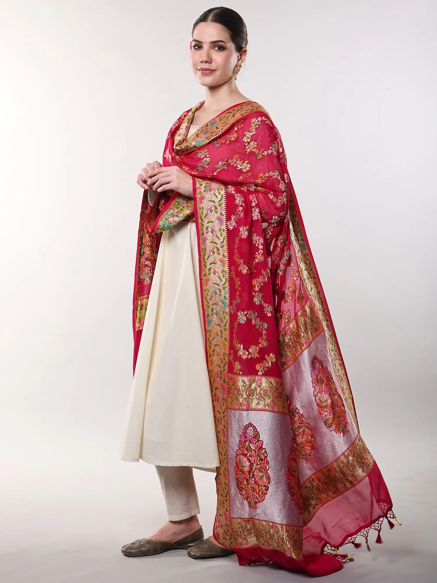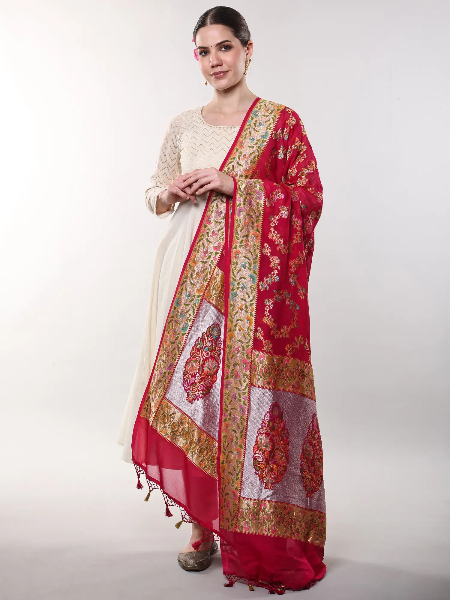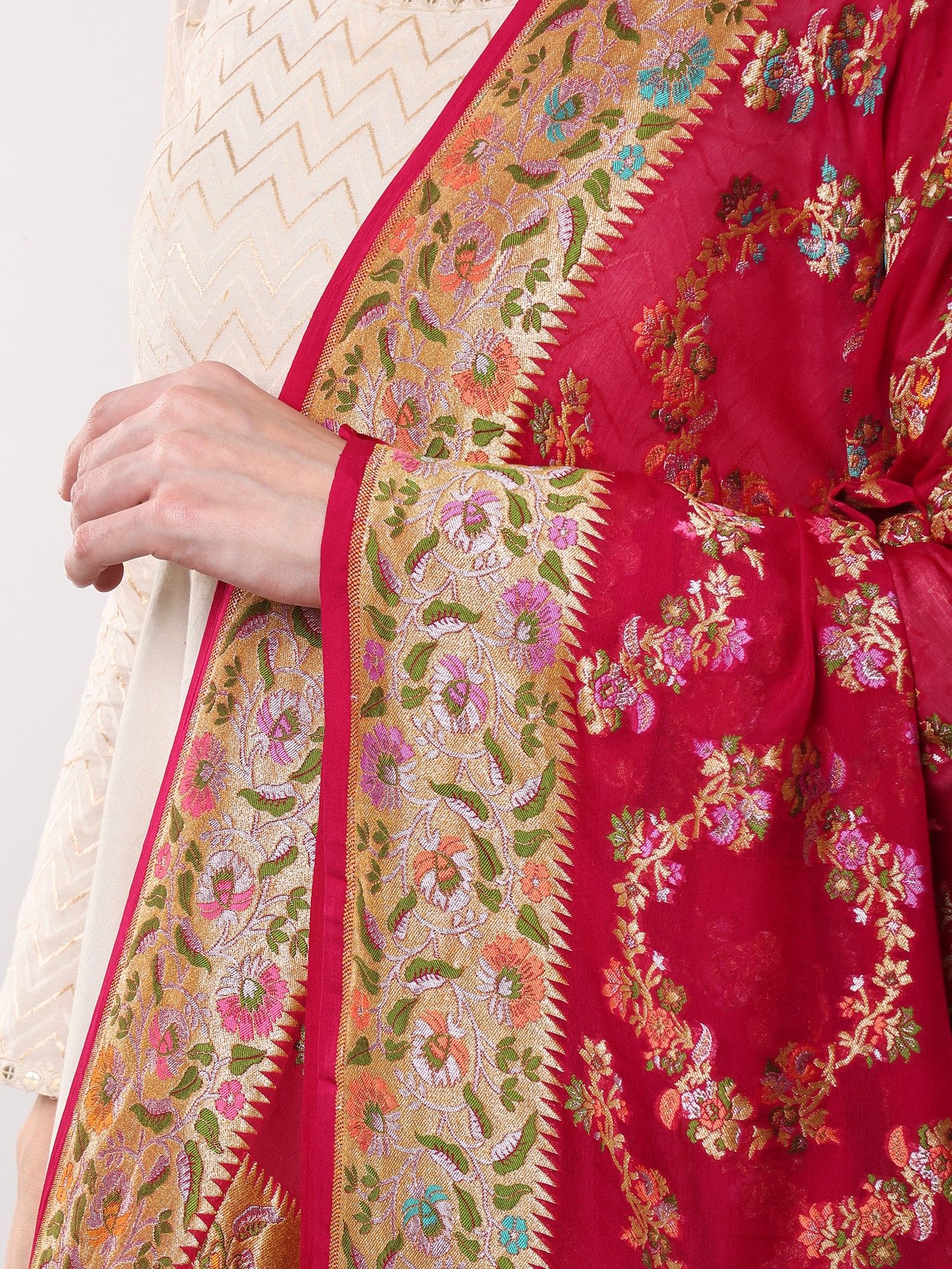 Banarasi Brocaded Zari Thread Dupatta with Floral Weave