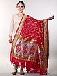 Zari Woven Bandhani Gharchola Dupatta with Floral Vine Border