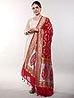 Red Zari Embroidered Dupatta with Beads and Scalloped Border