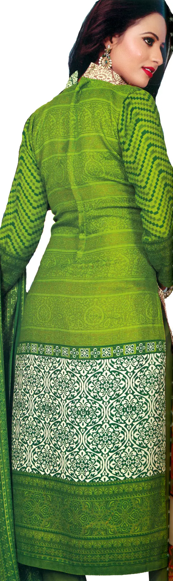 Elevate your ethnic wardrobe with this stunning Piquant-Green Choodidaar Kameez Suit, a harmonious blend of traditional design and contemporary flair. Crafted from a comfortable and durable PolyWool blend, this ensemble promises both style and ease of wear, making it perfect for a variety of occasions, from festive celebrations to casual gatherings. The kameez features an eye-catching design that draws the eye with its intricate printed motifs scattered across the fabric. The dominant piquant green hue is beautifully complemented by contrasting patterns, creating a visually dynamic and appealing aesthetic. The neckline and sleeves are adorned with thoughtful detailing, showcasing a unique interplay of colours and designs that add depth and character to the garment. A contrasting border at the hem further enhances the overall appeal, lending a touch of refined elegance. Accompanying the kameez is a matching choodidaar, designed for a snug and flattering fit. The classic silhouette of the choodidaar ensures comfort and allows for effortless movement, embodying the essence of traditional Indian attire. Completing the set is a beautifully coordinated dupatta, draped elegantly in the accompanying image. The dupatta mirrors the intricate printing seen on the kameez, featuring delicate patterns that create a cohesive and sophisticated look. The generous size of the dupatta allows for versatile styling, whether worn loosely over the shoulders or draped with traditional grace. This ensemble is a testament to the beauty of Indian textiles, offering a piece that is both culturally rich and fashion-forward. This Piquant-Green Choodidaar Kameez Suit is more than just an outfit; it's an expression of personal style and a celebration of vibrant colours. The detailed prints and thoughtful design elements come together to create a garment that is sure to make a statement. Its PolyWool fabric ensures a pleasant feel against the skin, making it a go-to choice for those seeking comfort without compromising on style.