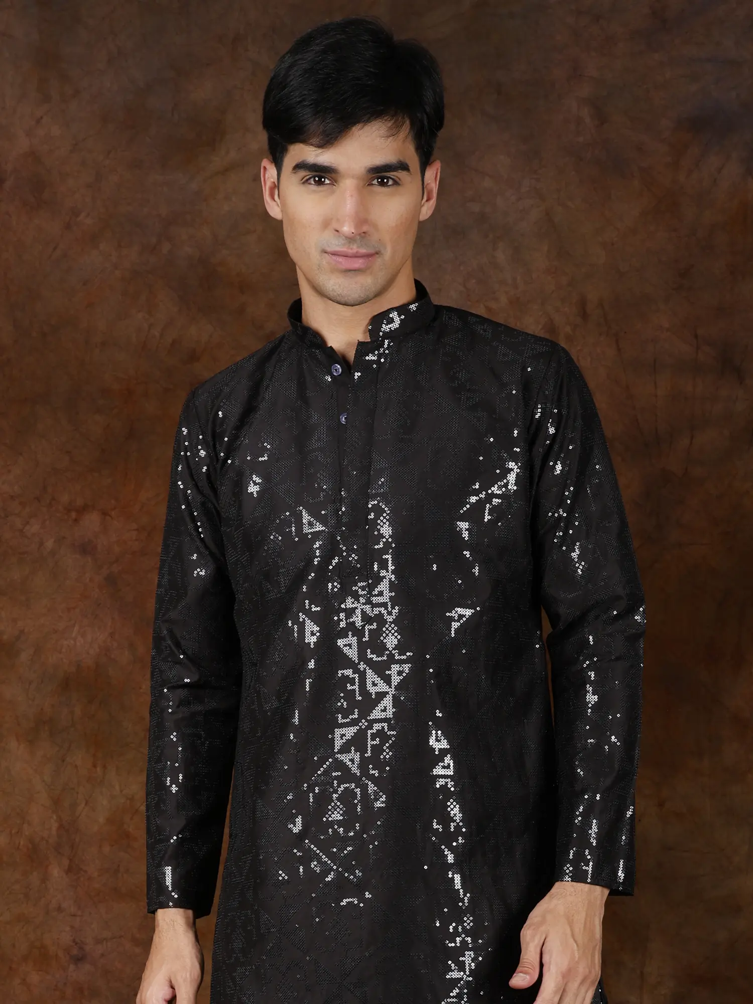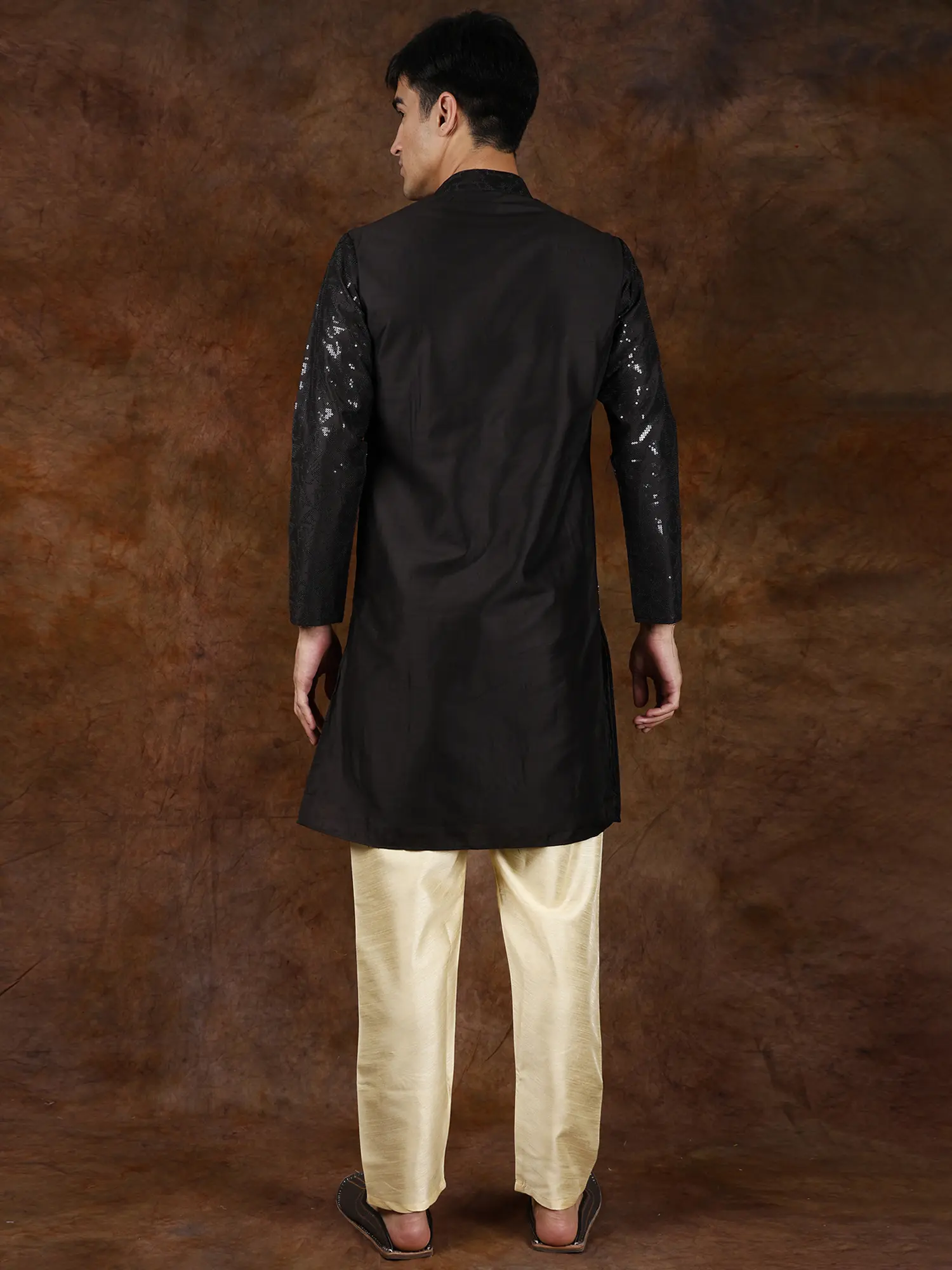 Pirate-Black Embellished Kurta with Sequin Work and Cream Pajama