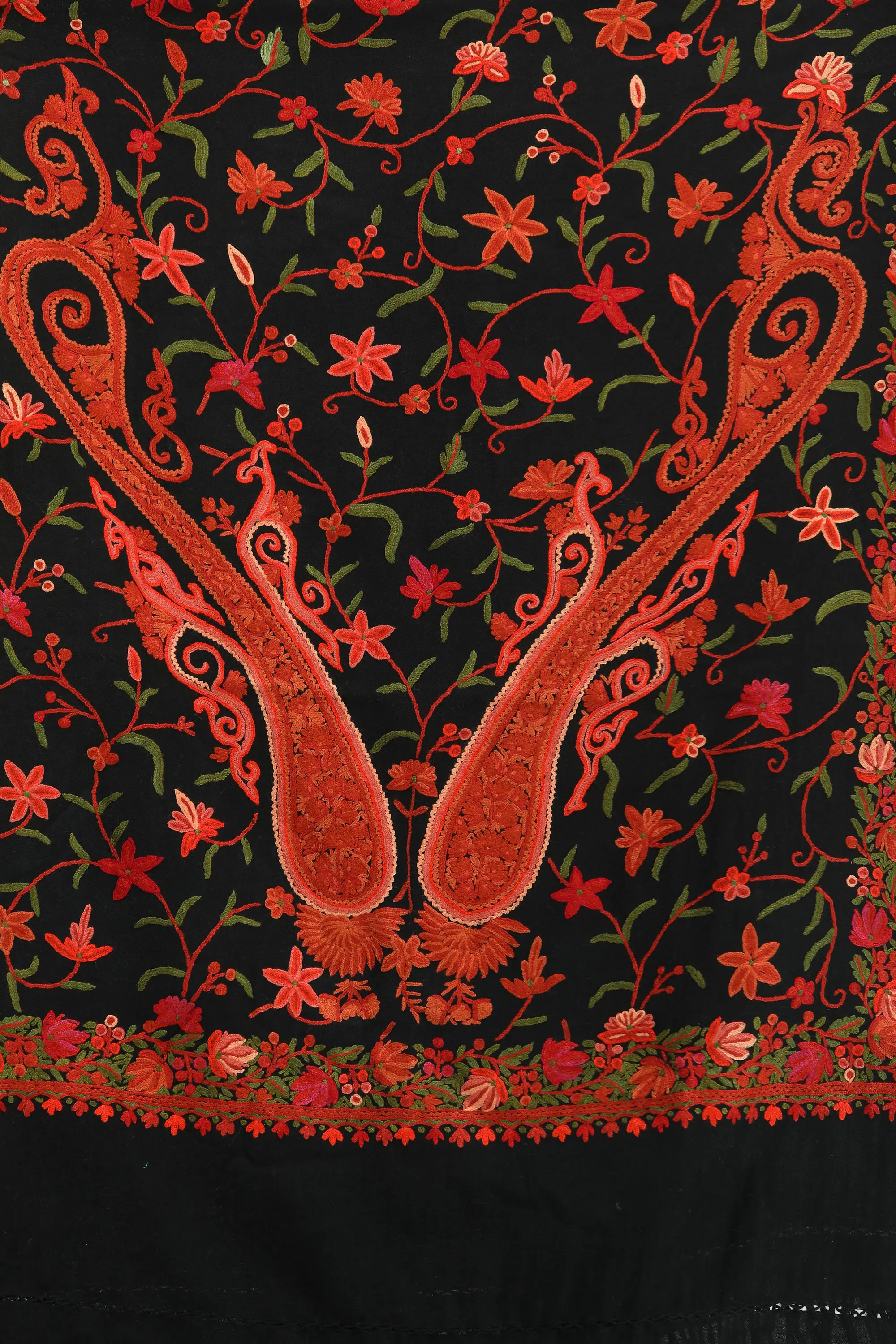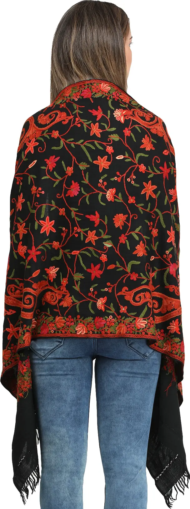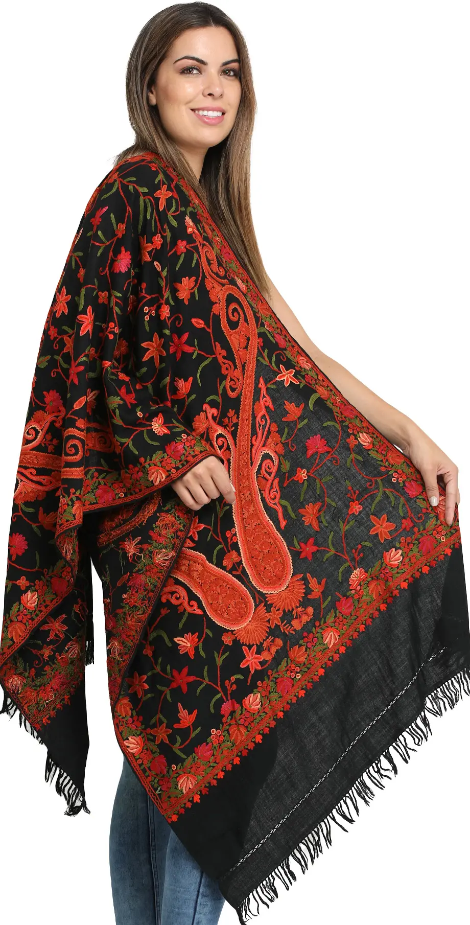 Royal-Blue Kashmiri Kaftan with Crewel Embroidered Flowers