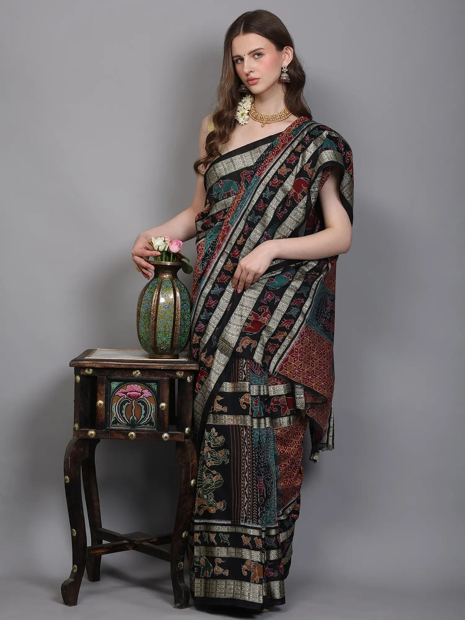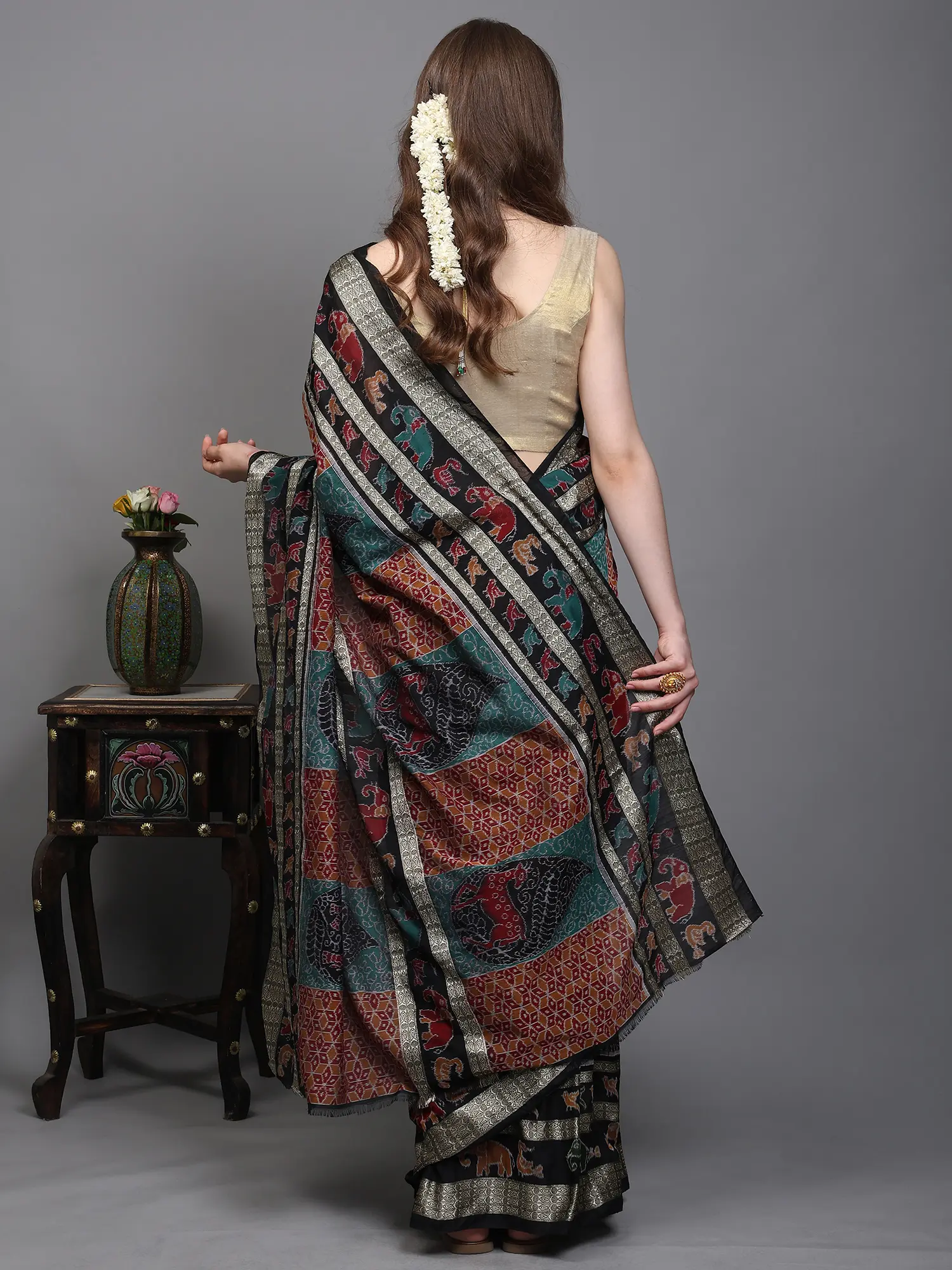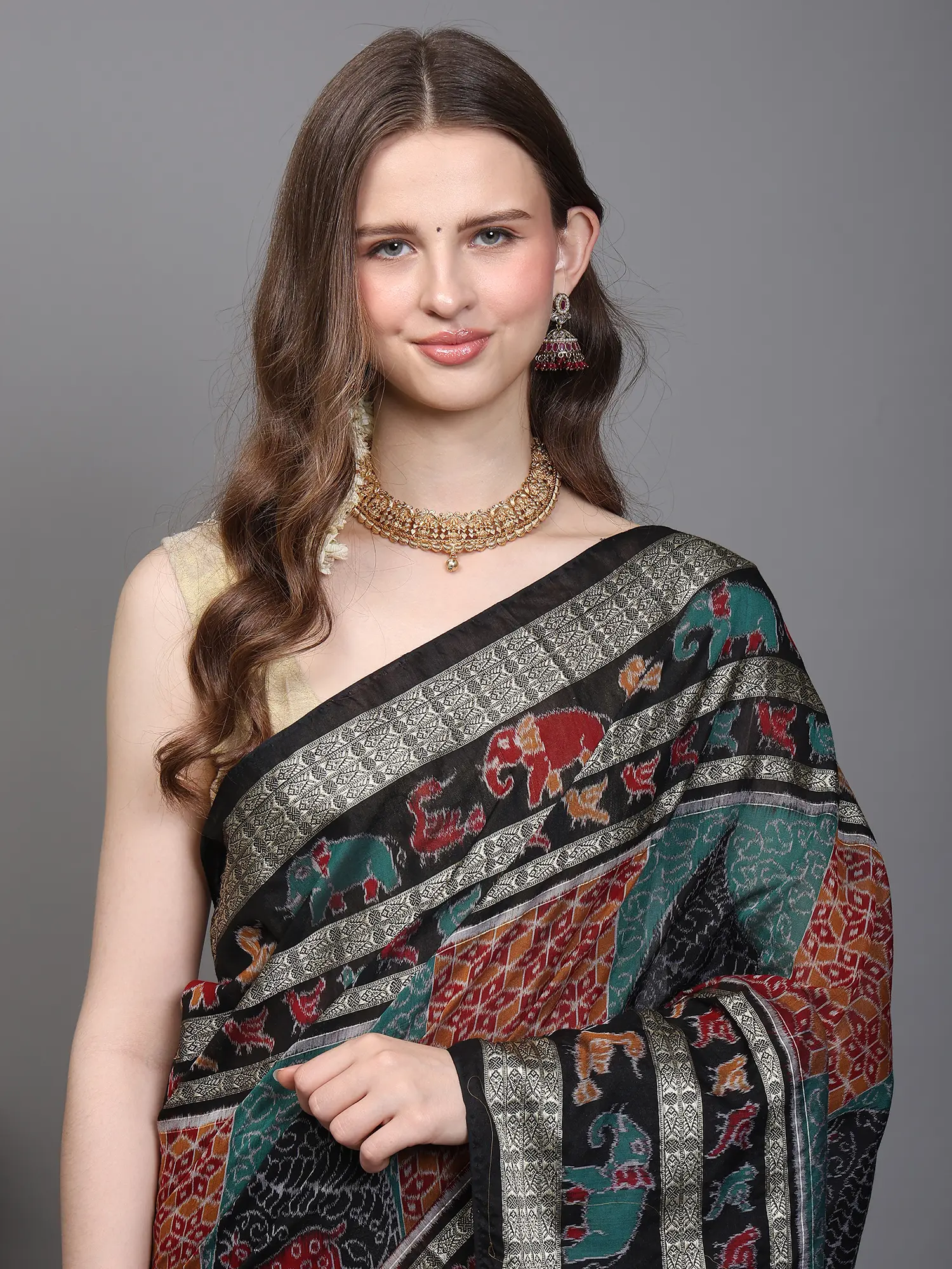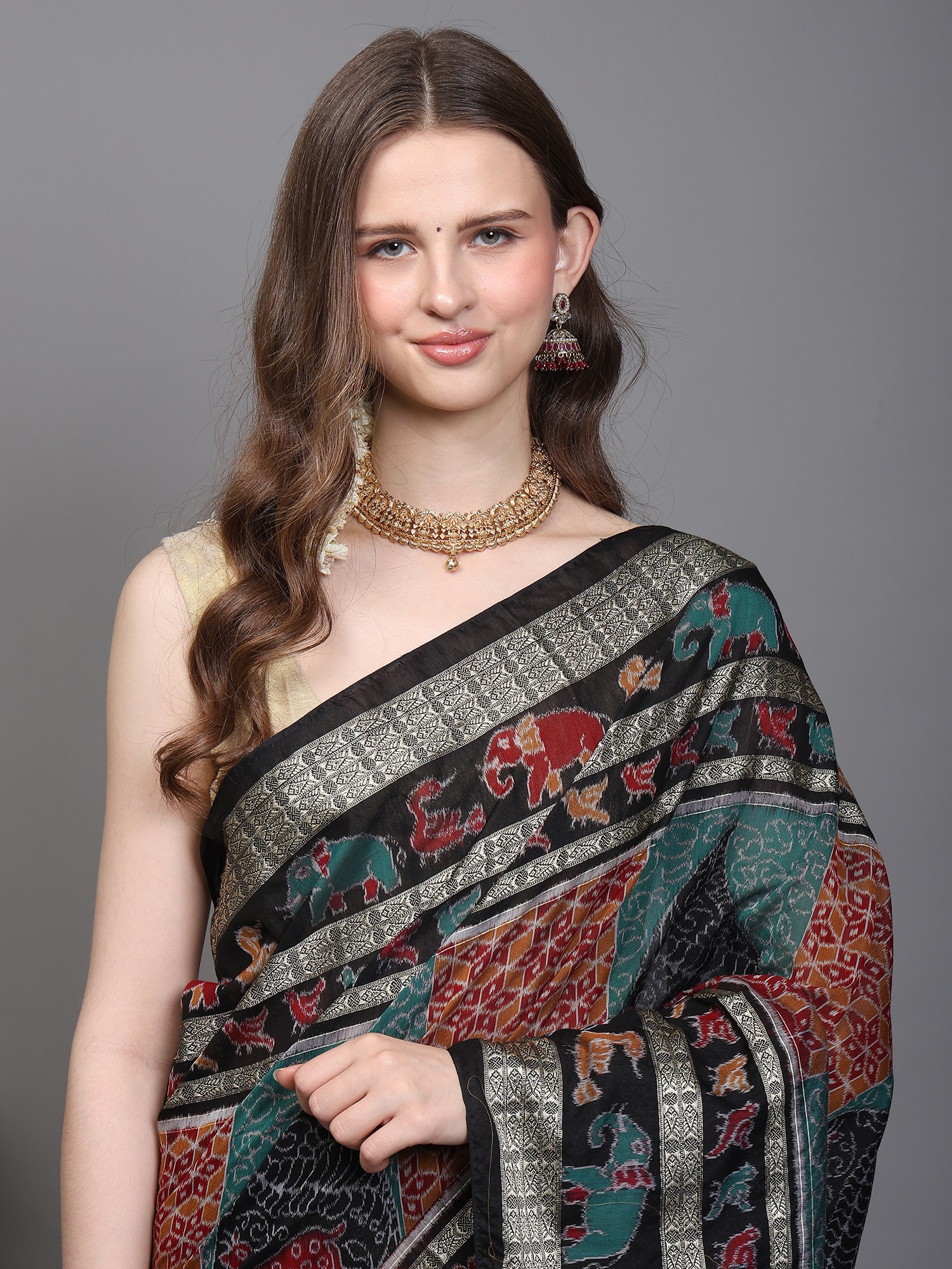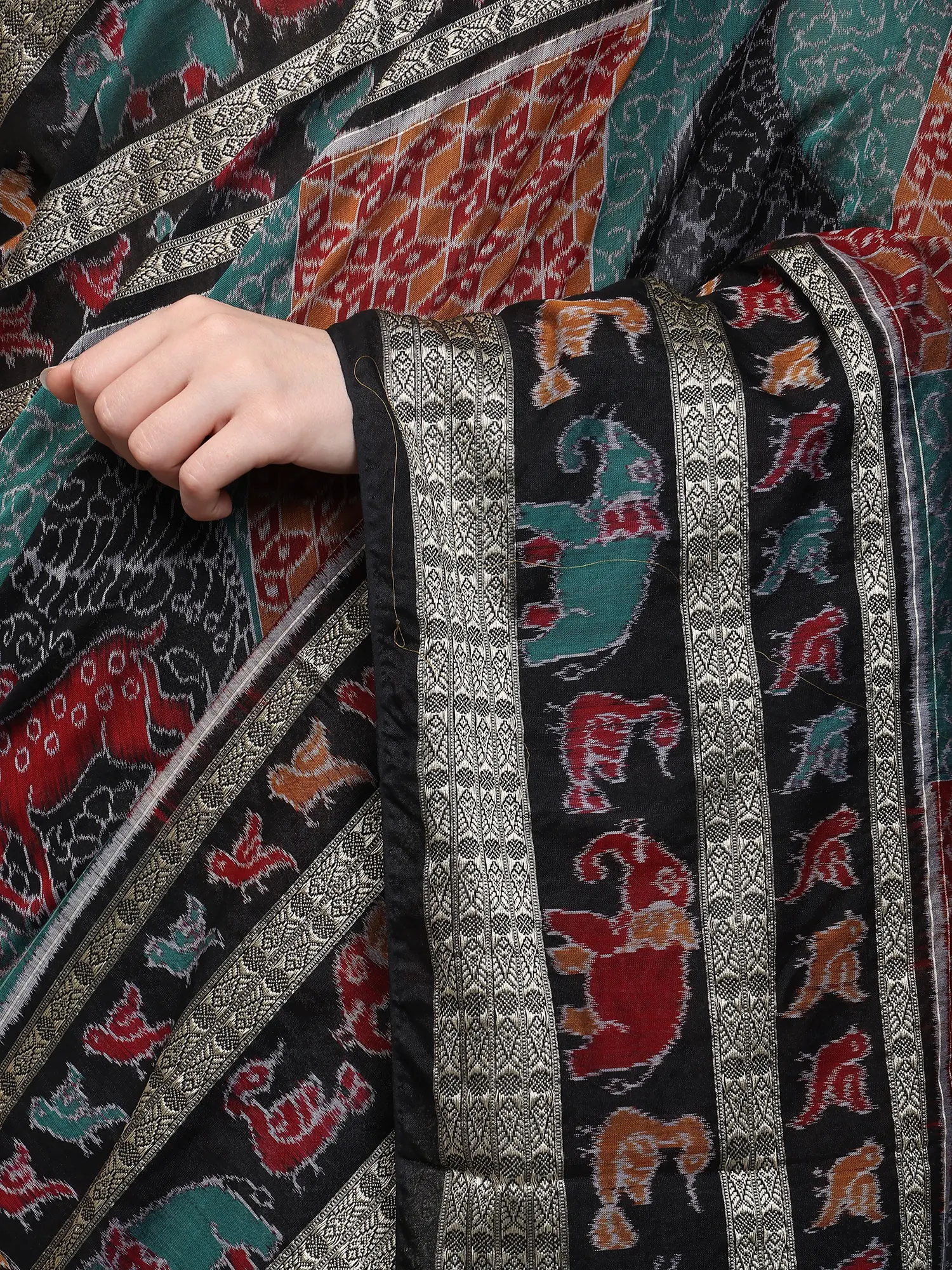 Friar-Brown Ikat Patola Sari from Pochampally with Hand-Woven Paisleys