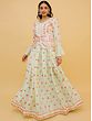 Savour the essence of ethereal elegance in this stunning Lehenga Choli, which is the embodiment of grace and refinement. This regal attire comprises a “Jacket Style Choli” embellished with brilliant Thread Foil Mirror Embroidery suggestive of heavenly stars. The opulent Lehenga in soothing Pista-Green wraps you in royal glory, while the “Beautiful Dupatta” adds a touch of allure to your attire.