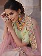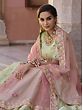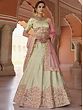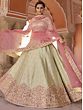 Adorn oneself in the magical allure of the Pista-Green Lehenga Choli containing delicate Pink Flower Dori Embroidery. The beautiful floral embroidery lends a touch of feminine charm and elegance, while the pasta-green tint gives the ensemble a refreshing and energetic touch. A sheer designer dupatta completes the look, bringing elegance and sophistication together harmoniously. With its exquisite detailing and mesmerizing design, this Pista-Green Lehenga Choli is sure to make you stand out on any special occasion, be it a festive celebration, wedding ceremony, or anything else. Wearing this gorgeous outfit, embrace the elegance of heritage with a contemporary touch.