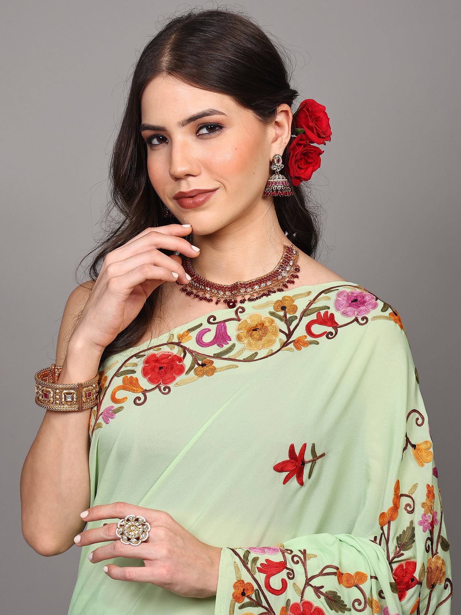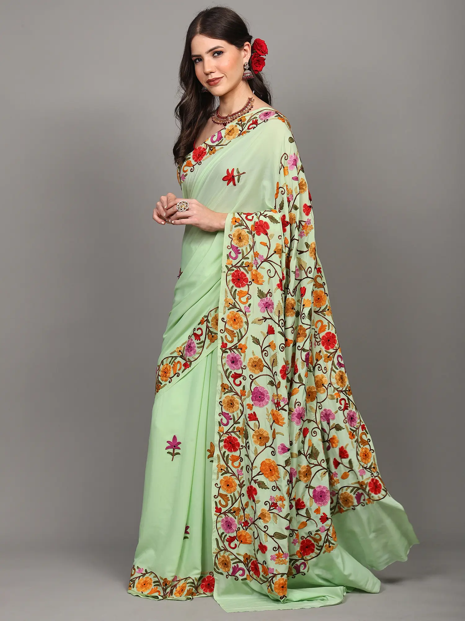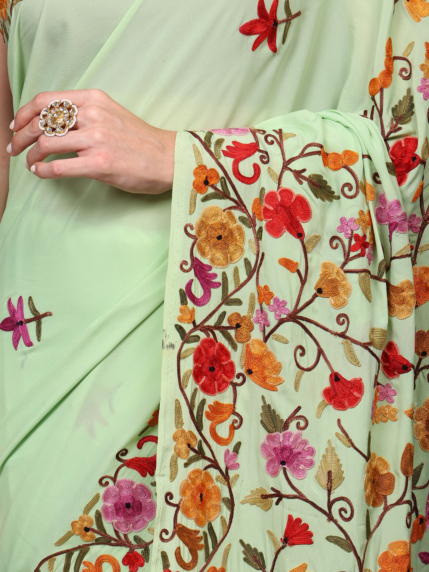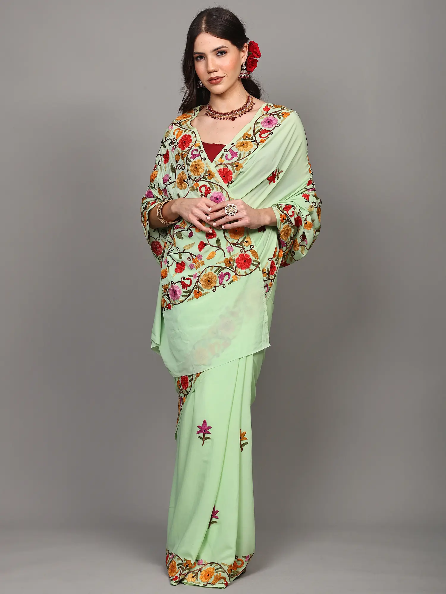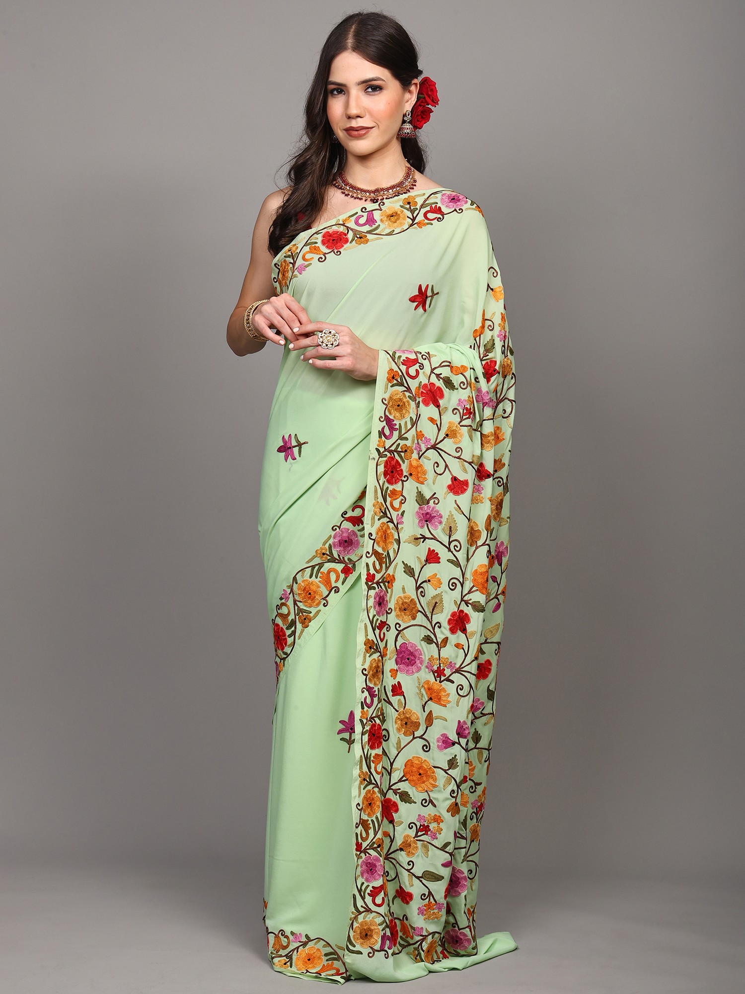 Georgette Kashmiri Sari with Beautiful All-Over Kashida Embroidery