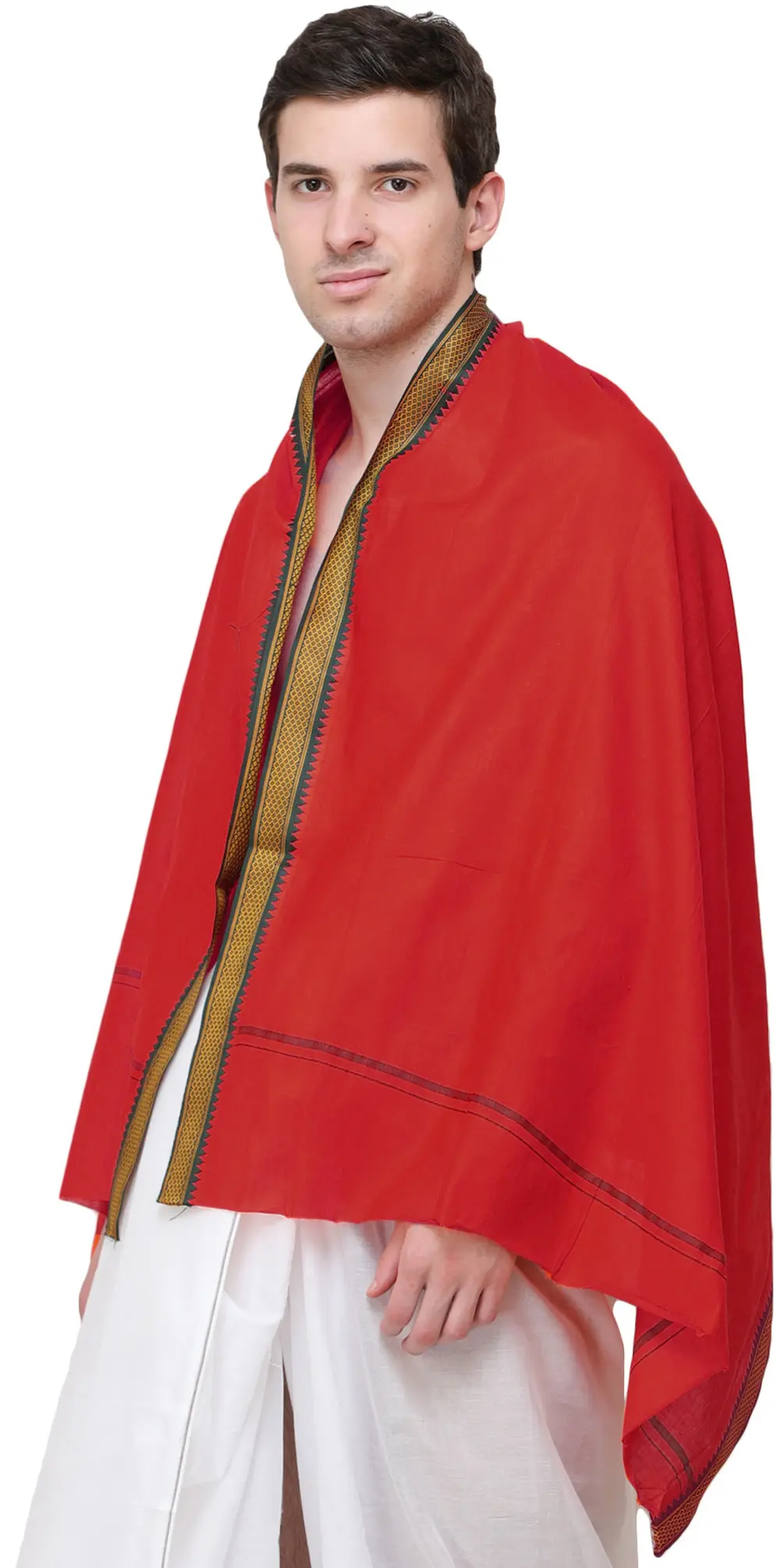 This pure cotton Angavastram in cream is the essence of simple but exquisite elegance. This cotton Uttari features a vibrant Ganga Jamuna border in orange and green. The bright-cream color exudes purity and refinement, while the beautifully woven border adds regal flair. The material is of the greatest grade. Carrying it on the shoulders or wrapping it around the body, the delicate and soft fabric is really useful in both circumstances. The overall appearance of the clothing is incredibly exquisite, making it a wonderful choice for traditional situations.