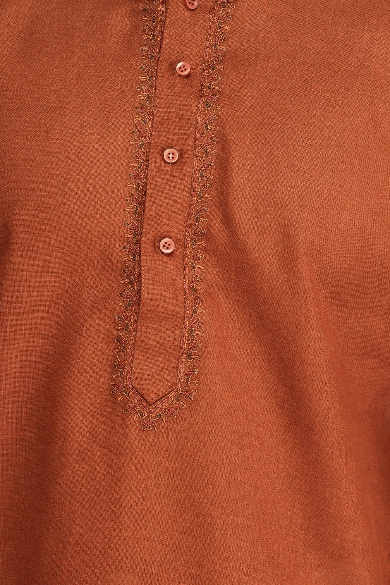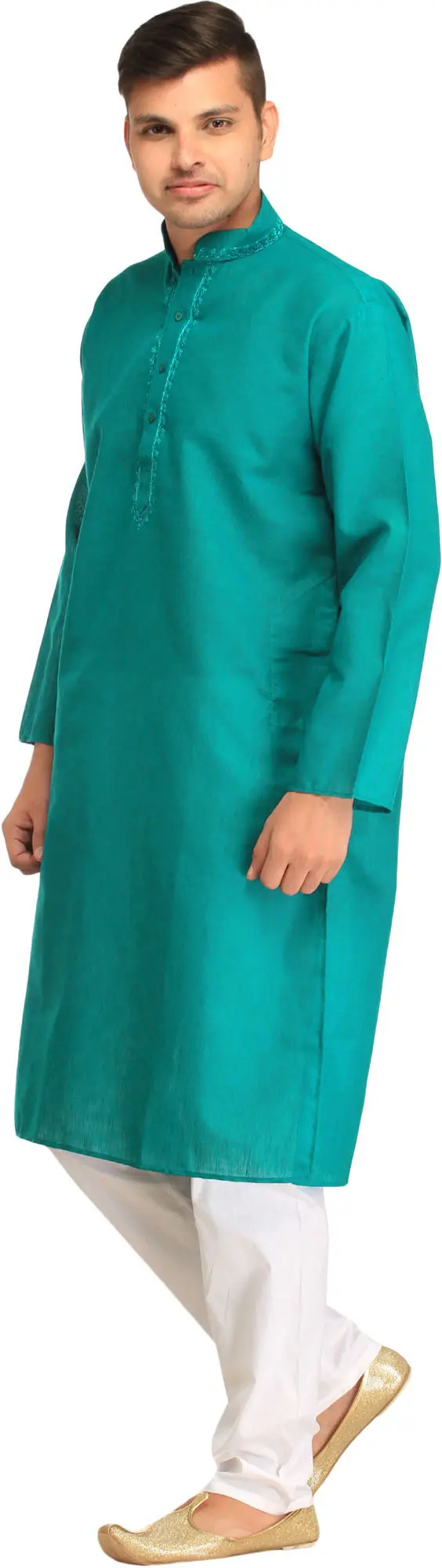 Embrace timeless fashion and relish the comfort of pure cotton with this “Kurta Pajama Set”. Crafted from pure cotton, this ensemble offers a relaxed fit, ideal for everyday wear. The subtle yet intricate thread embroidery on the neckline gives elegance and uniqueness to the attire, making it suitable for various occasions, from casual gatherings to festive celebrations. Its understated charm allows for easy accessorising, making it a wardrobe essential for those who appreciate simplicity with a hint of sophistication. This ensemble perfectly embodies the fusion of tradition and contemporary fashion.