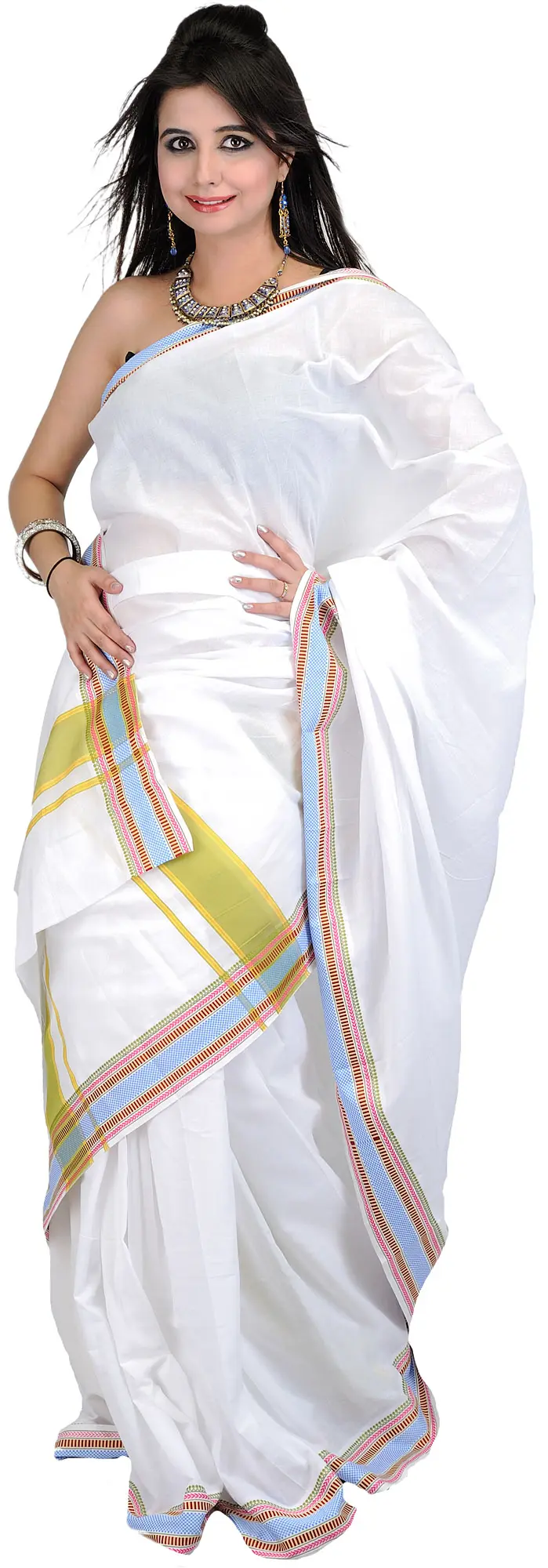 Ivory Kasavu Puja Sari from Kerala with Golden Border