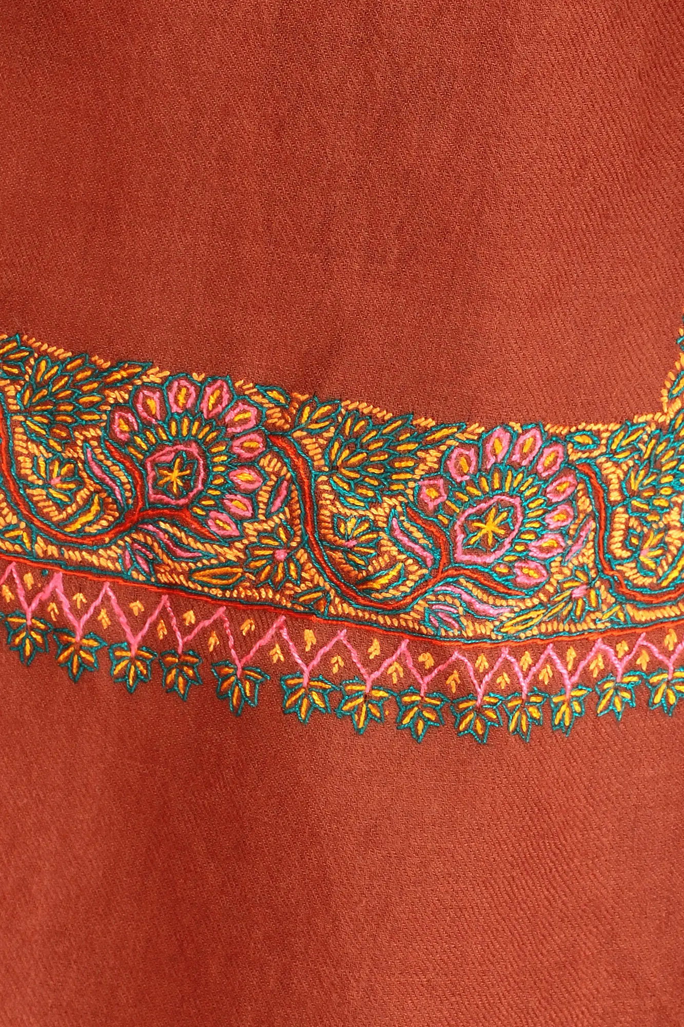 Plain Kashmiri Tusha Stole with Needle Hand-Embroidery on Border