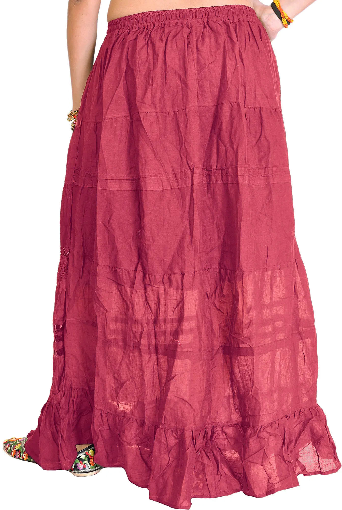 This Plain Long Skirt with Lace and Crochet will envelop you in its enchanting beauty. Crafted from pure cotton, it emphasises simplicity with a dash of luxurious appeal. The lovely lace and crochet details cascade down the length, adding a touch of splendour to your every movement. Versatile yet stunning, this skirt seamlessly adapts from everyday use to special occasions. Its airy fabric offers comfort, and its classic design evokes grace and femininity. Whether wandering through sun-kissed meadows or attending a soirée beneath the stars, this skirt represents refined style and easy refinement.
