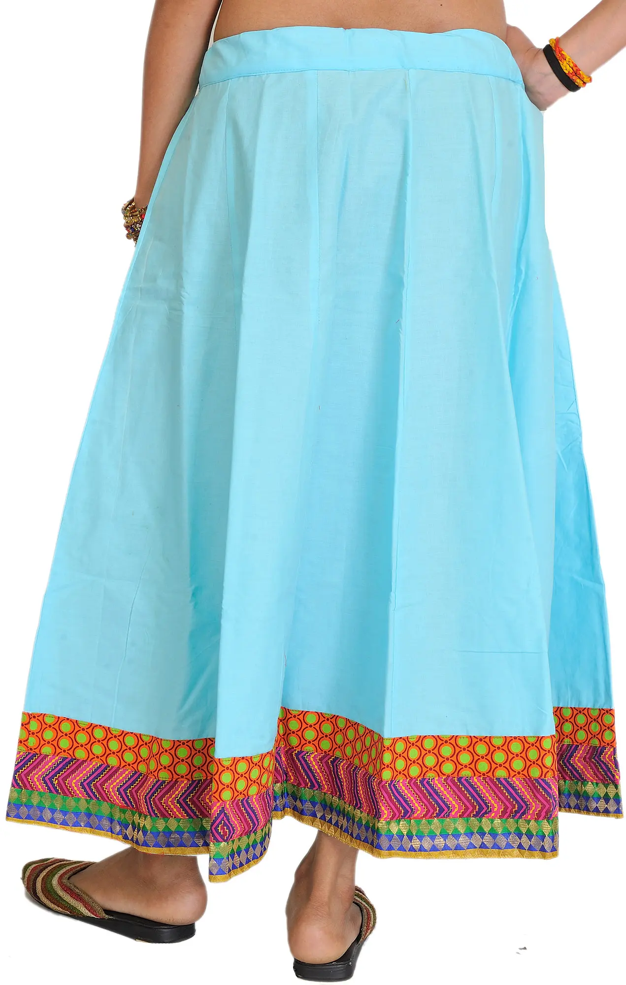 Made from pure cotton, this skirt is a canvas of sophistication. Adorned with a mesmerizing patch border, each thread tells a story of tradition and modernity intertwining seamlessly.