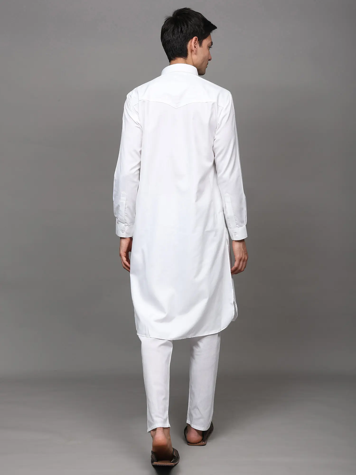 Plain Pure Cotton Pathani Kurta Pajama Set with Front Pocket