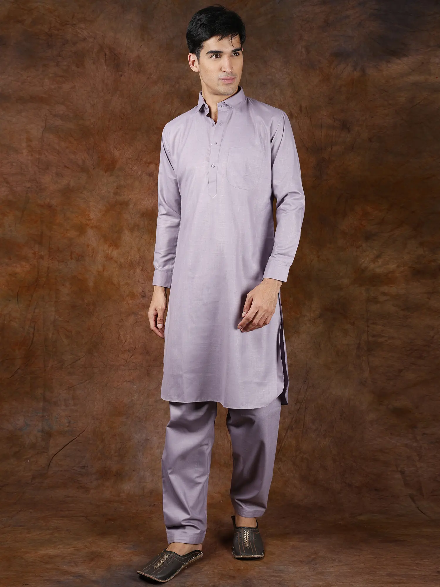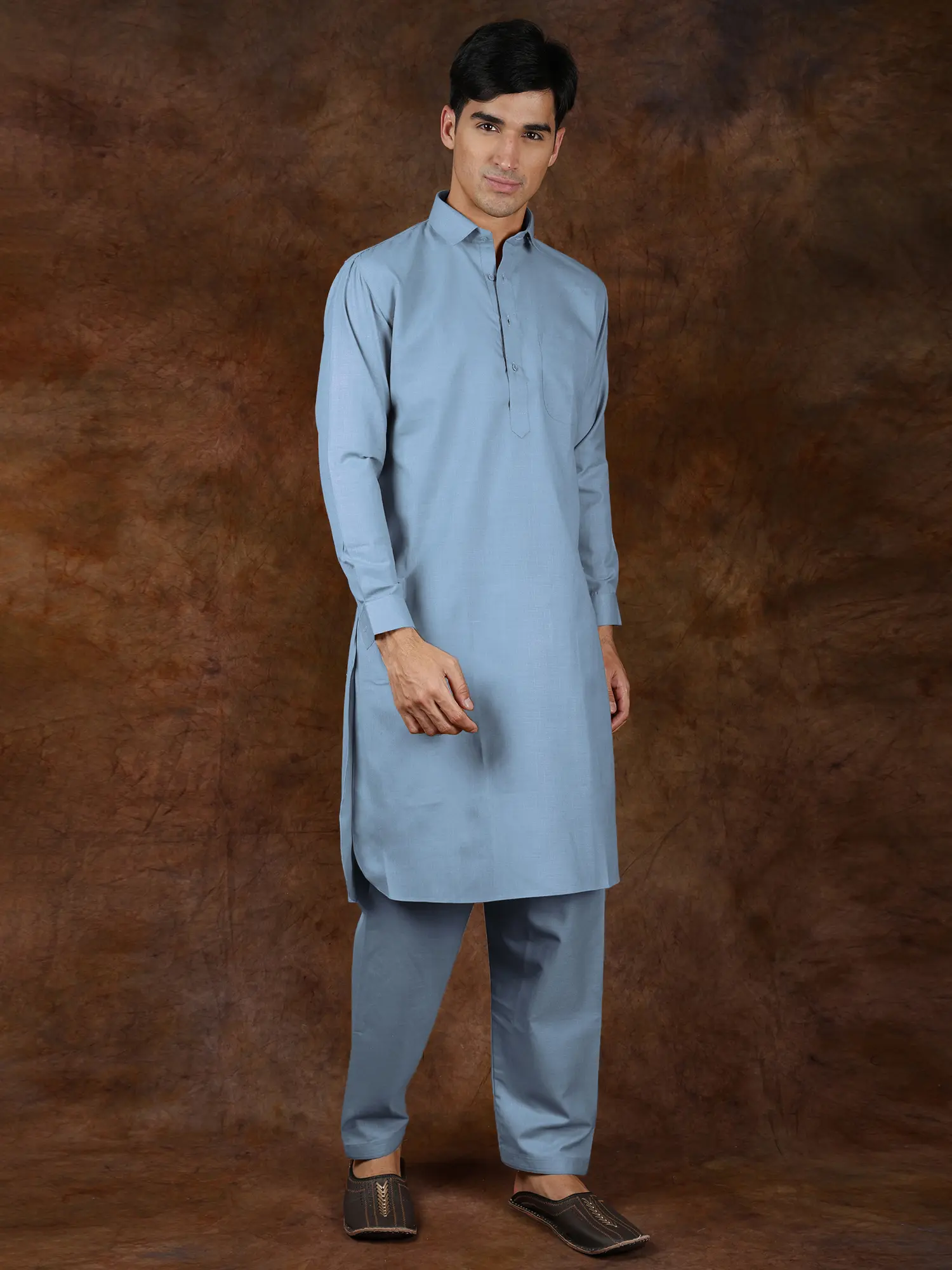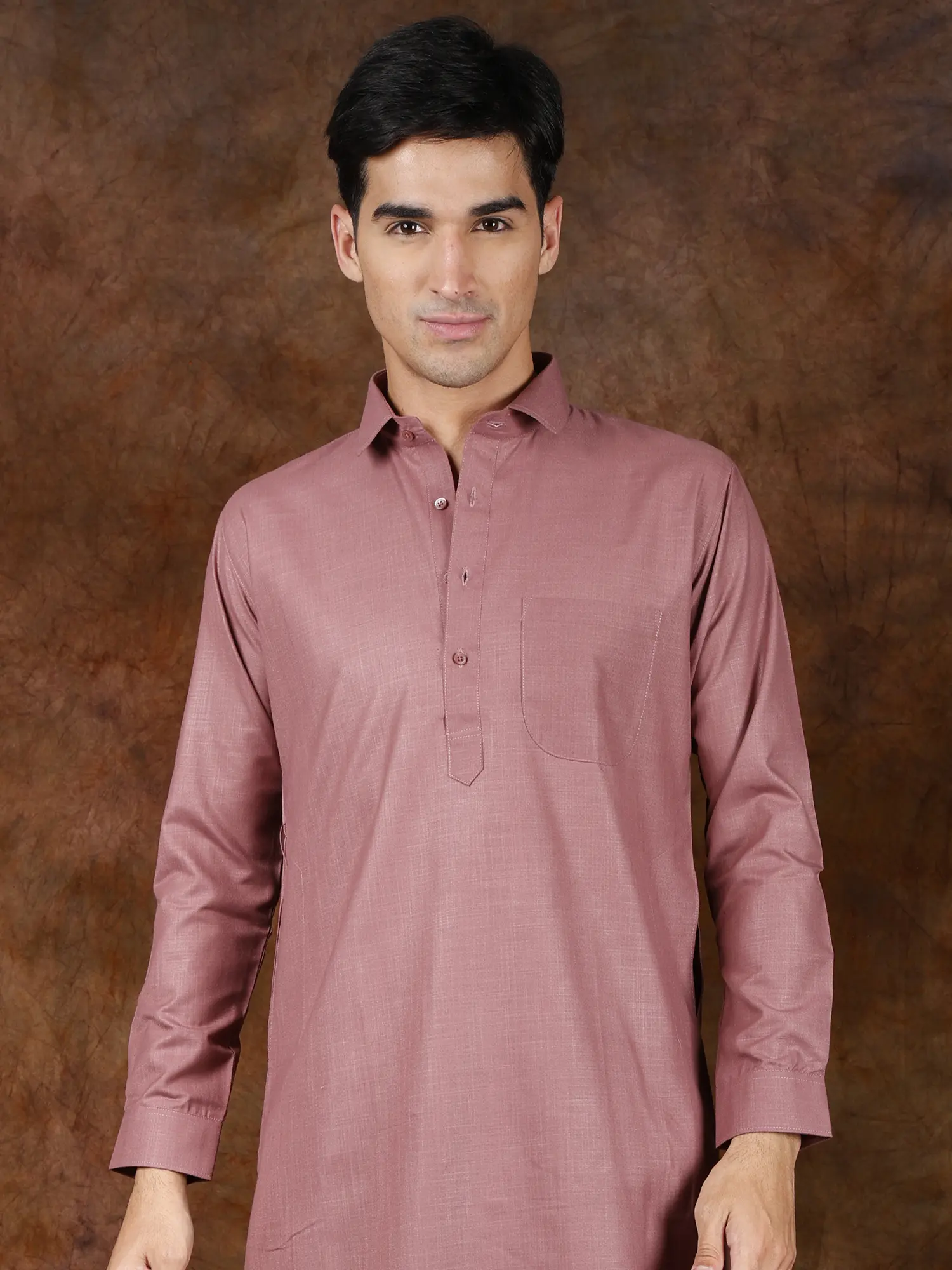 Pastel Plain Pathani Kurta Shalwar Set with Front Pocket