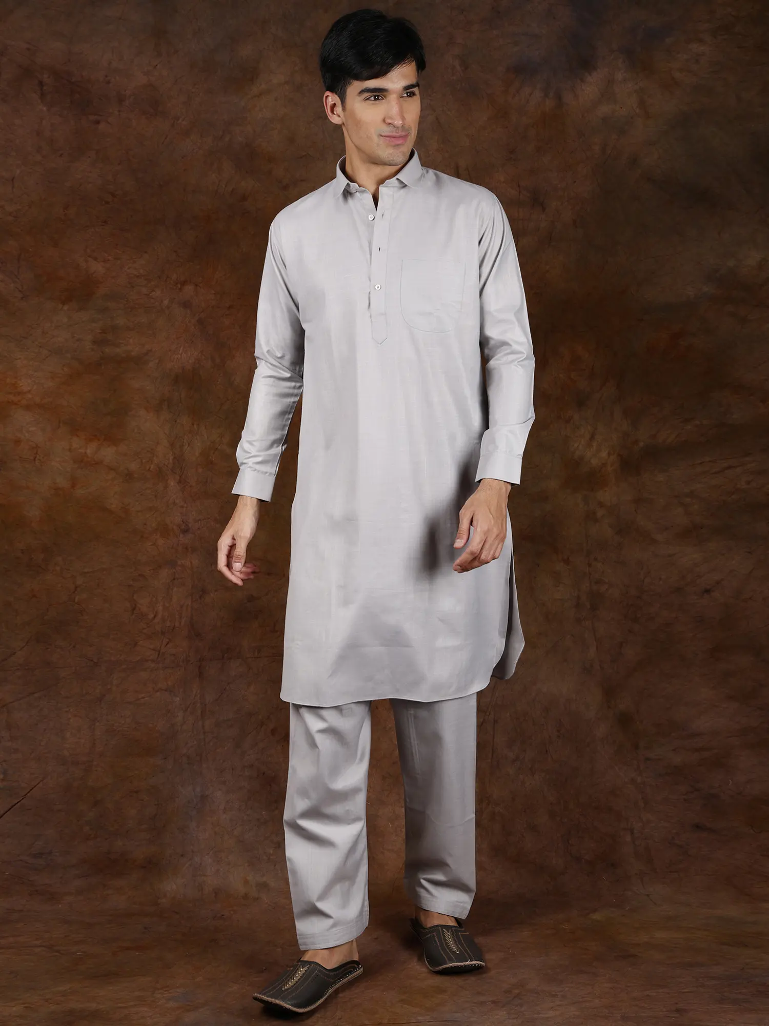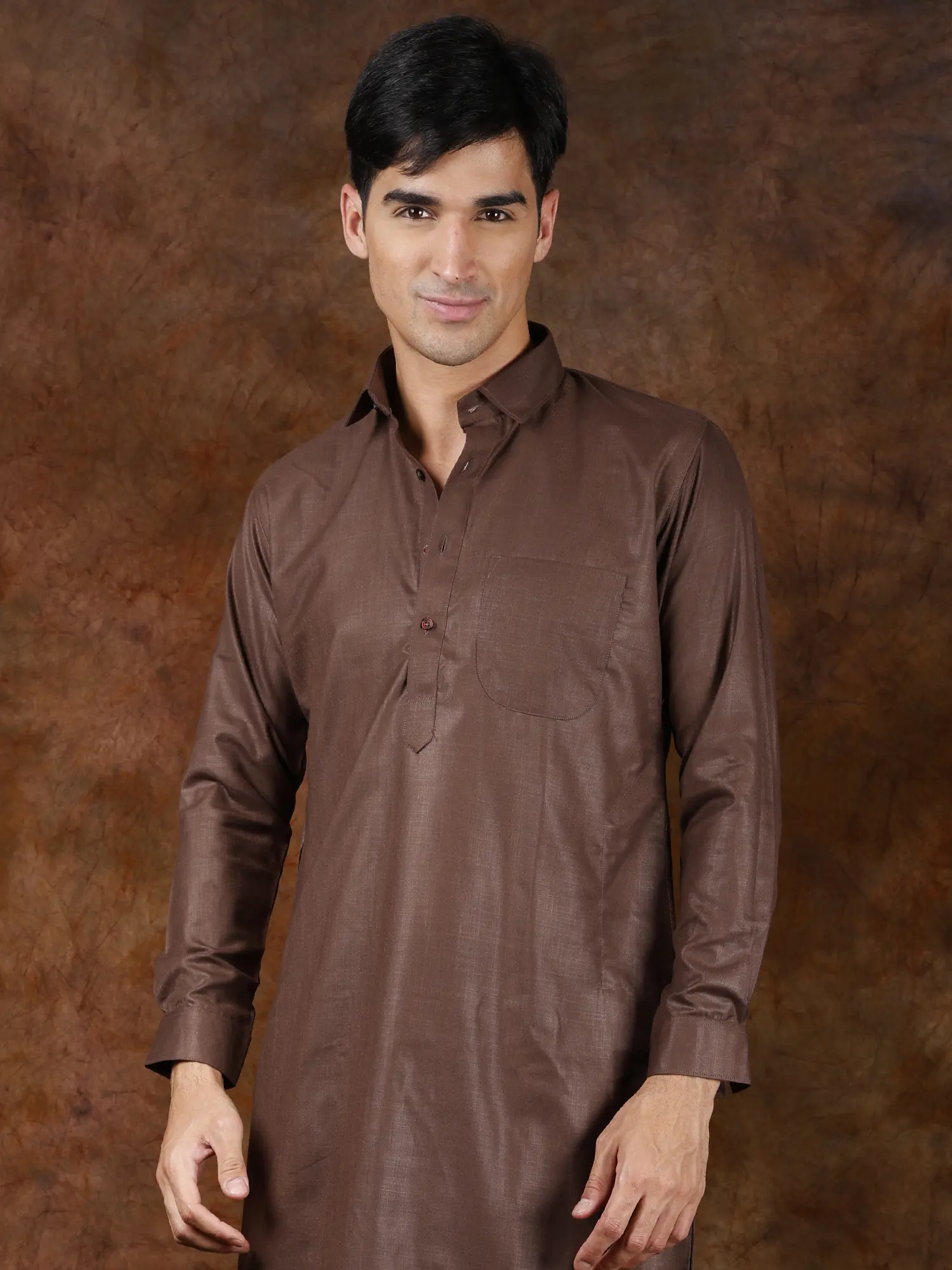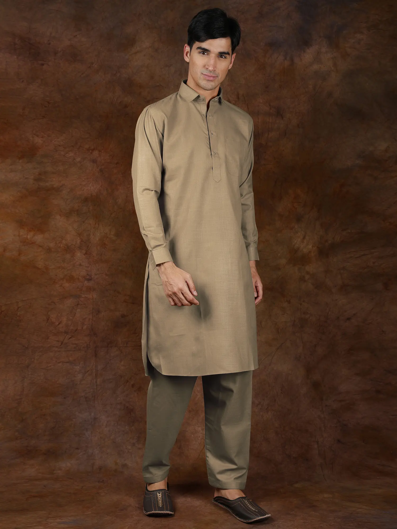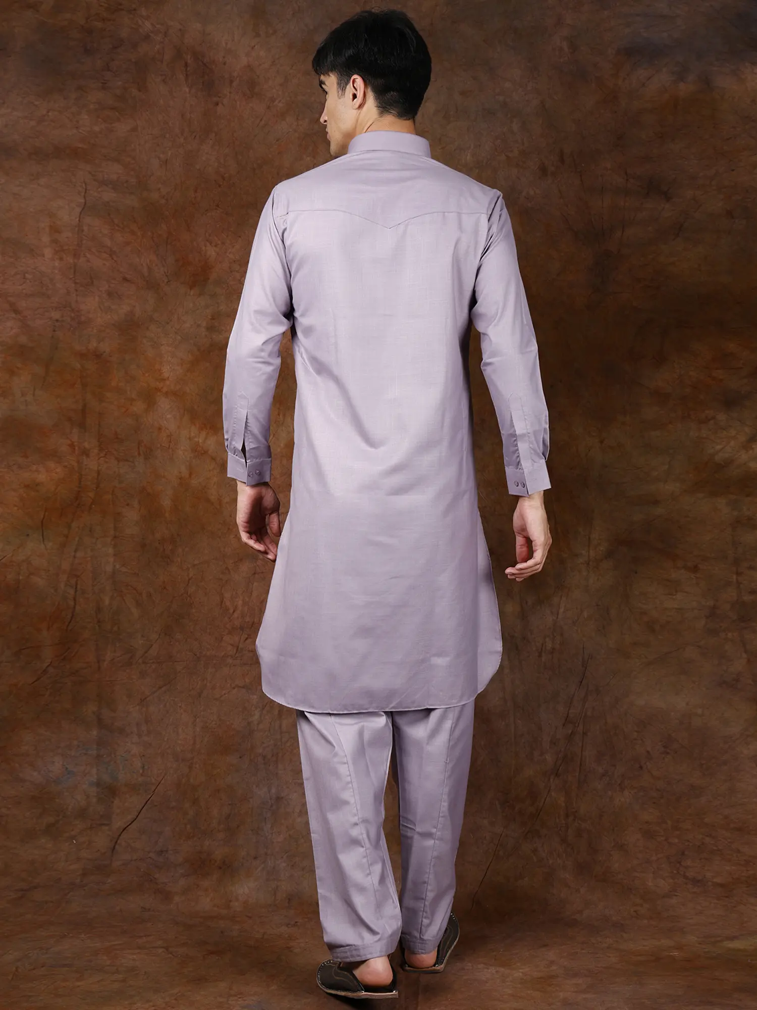 Pastel Plain Pathani Kurta Shalwar Set with Front Pocket
