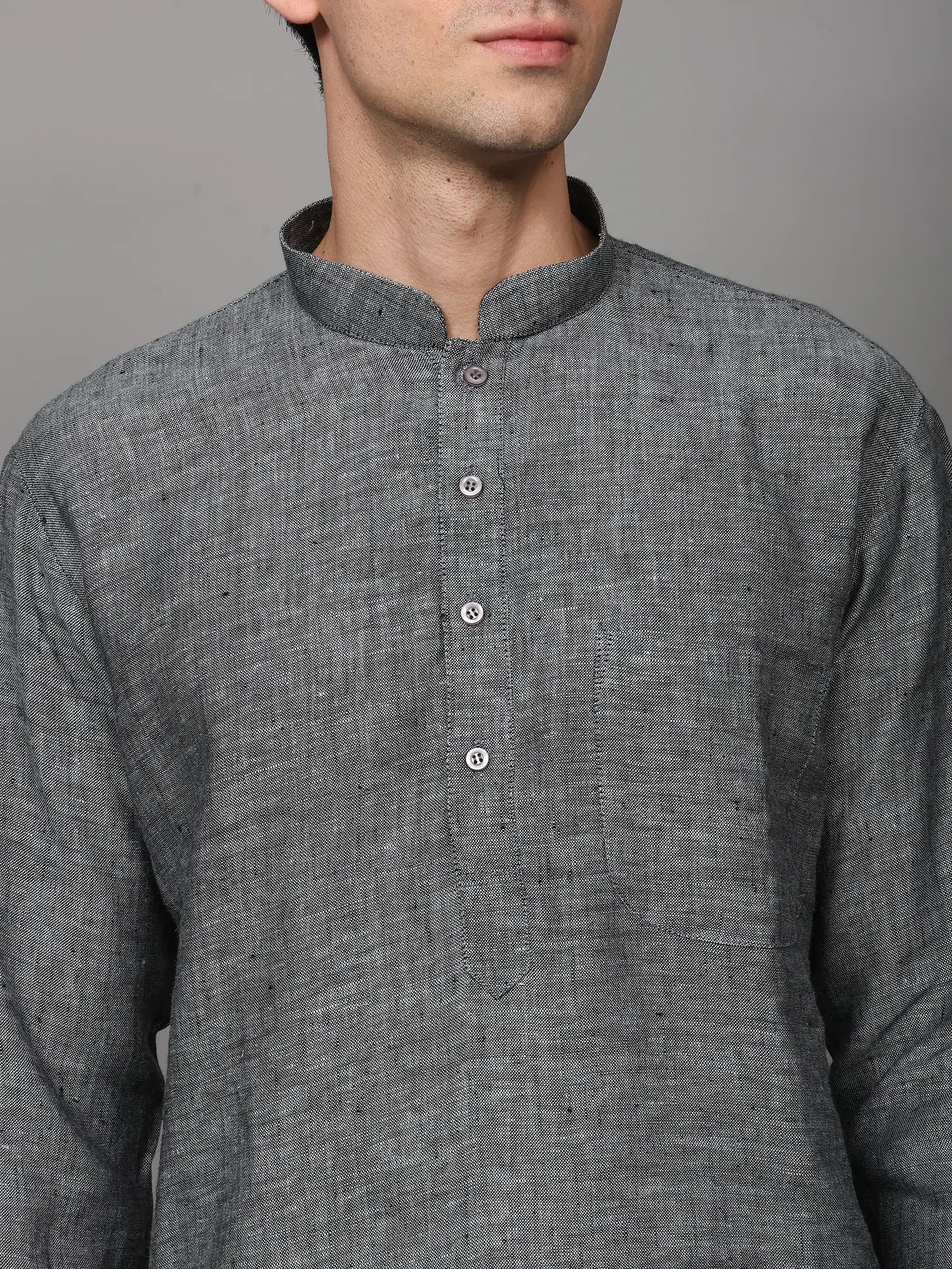 Indian fashion wear has the most changing trend, so to be in level with the great fashionistas it is mandatory to keep a regular check on the ongoing and upcoming fashion ways for both men and women. Keeping this in mind, our expert team brings out the best from the lot, for you, to keep your wardrobes filled with the latest fashion trends. This linen kurta pajama set is the most highly demanded Indian men fashion wear, as its 100% pure quality fabric allows it to be worn in scorching sun. Linen has a natural looking texture and can withstand high temperatures. The finest quality of a linen fabric is that it is strong and it can easily absorb and draw away heat from the body, which makes it a comfortable wear for summers. As you zoom in to the image, you can see the self-textured pattern and a slight sheen on the fabric, which gives it a semi-formal look.